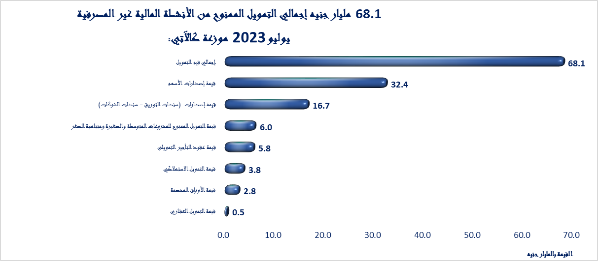 68.1 مليار جنيه إجمالي التمويل الممنوح من قطاع الخدمات الغير مصرفية خلال يوليو
