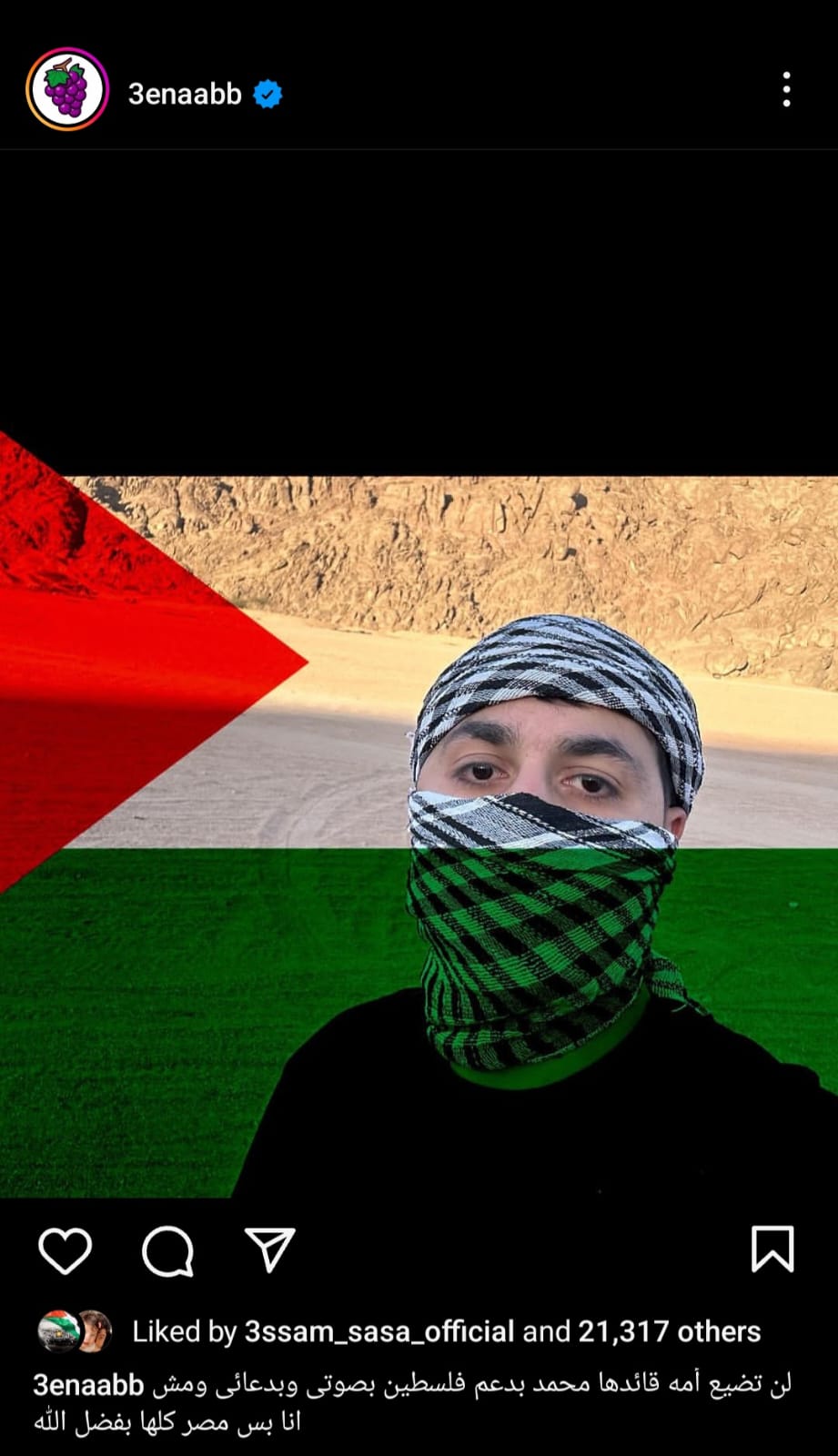 لن تضيع أمة قائدها محمد.. عنبة يدعم الشعب الفلسطيني