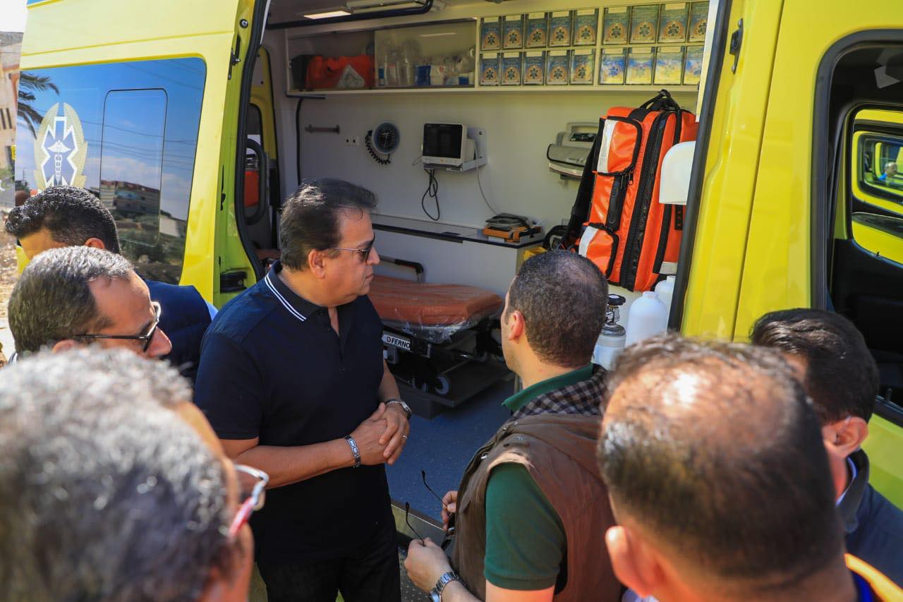 تفقد الدكتور خالد عبدالغفار وزير الصحة والسكان، يرافقه اللواء محمد عبدالفضيل شوشة محافظ شمال سيناء، اليوم، نقطتي تمركز إسعاف أبوطويلة، ومعبر رفح البري، بمحافظة شمال سيناء.