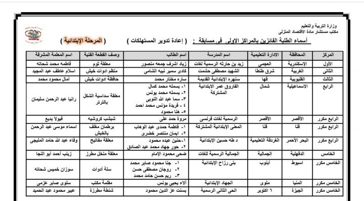 "تعليم القليوبية" يحصد المركز الأول على مستوى الجمهورية بمسابقة الاقتصاد المنزلي