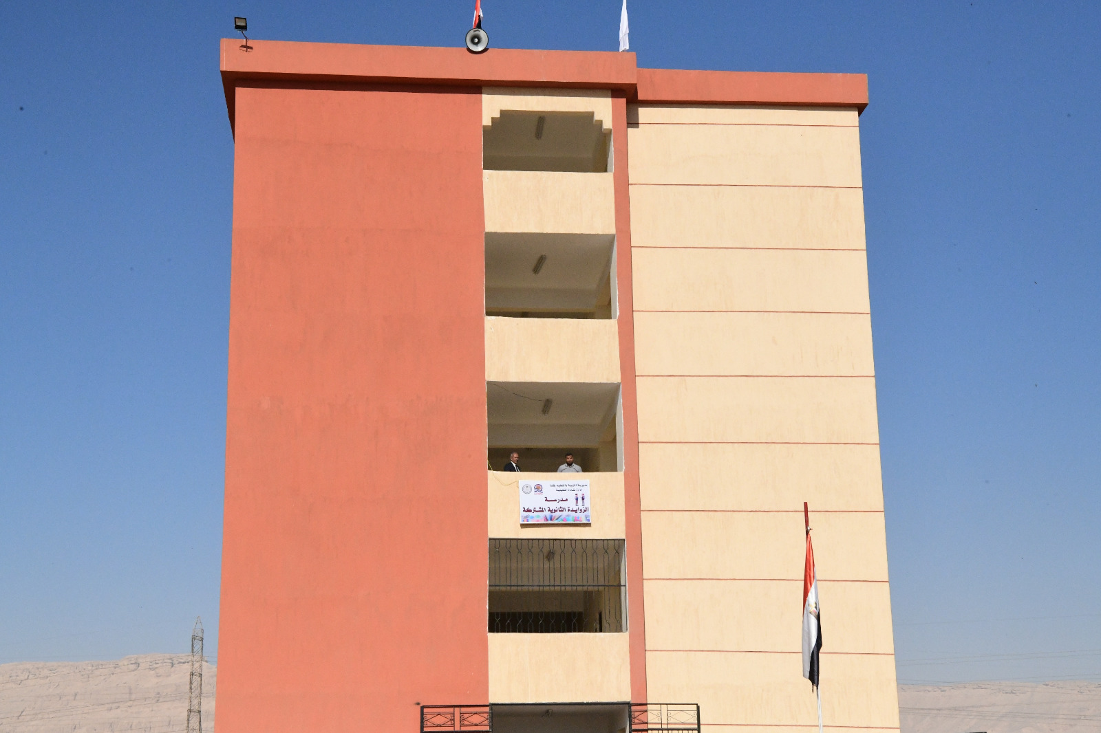 7650 م2 وتضم مبنى دراسي على مساحة 650 م2 مكون من طابق أرضي و 4 طوابق علوية تحتوي على 33 فصل دراسي، بطاقة استيعابية 480 طالب وطالبة .