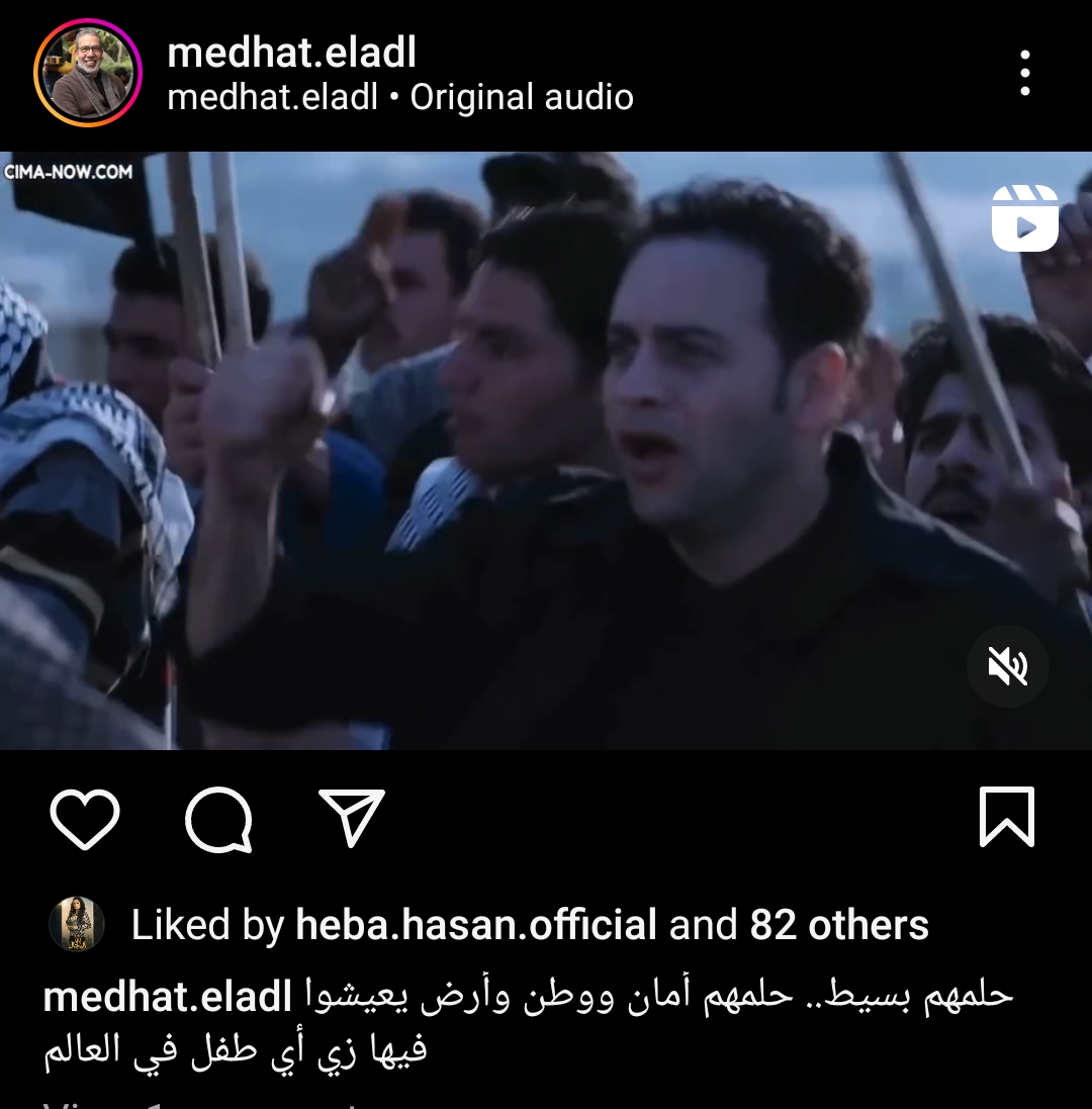 نشر الكاتب مدحت العدل مقطع فيديو من فيلم “ أصحاب ولا بيزنس ” الذي كان من تأليفه على صفحته الرسمية عبر موقع تبادل الصور و الفيديوهات “ إنستجرام ” و علق قائلا “ حلمهم بسيط .. حلمهم أمان و وطن و أرض يعيشوا فيها زي أي طفل في العالم ” .