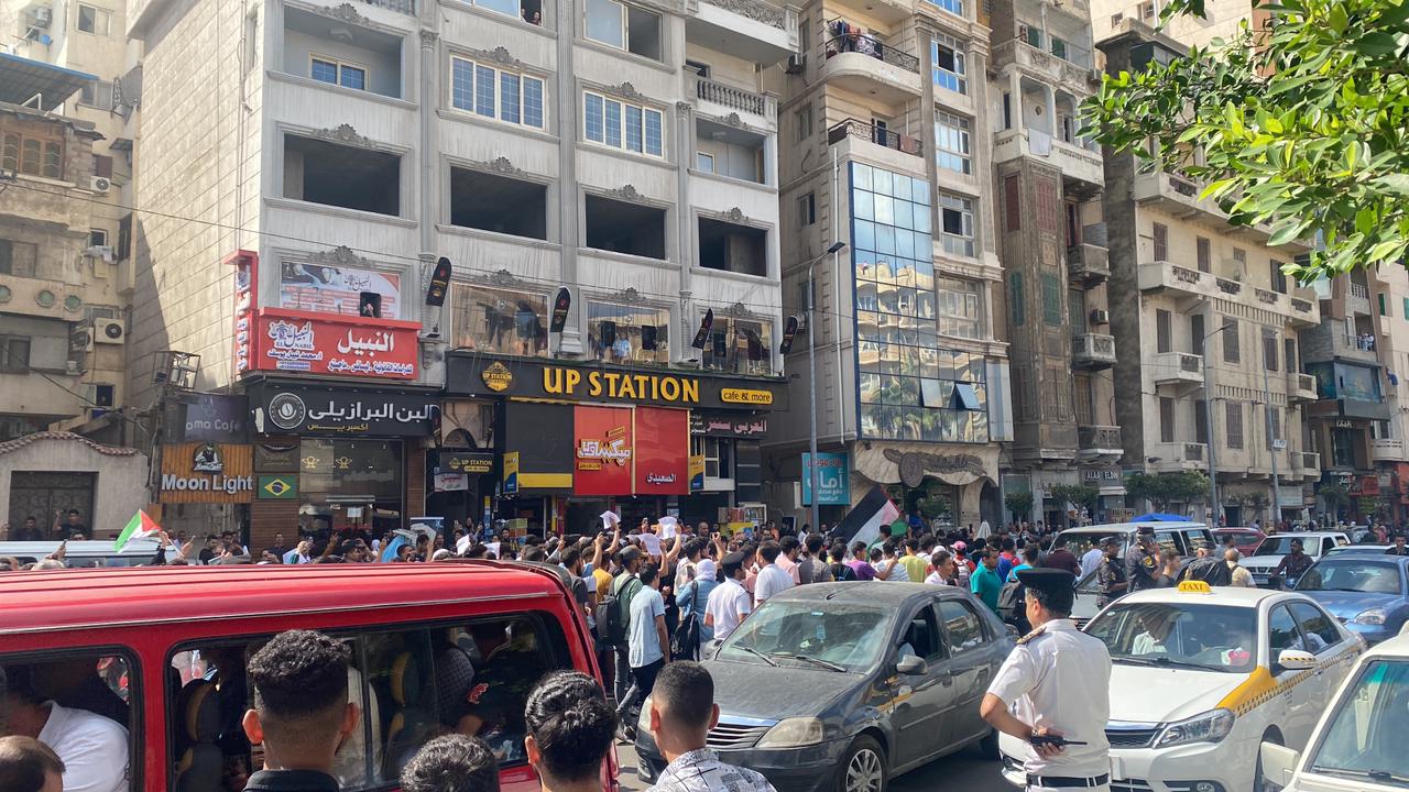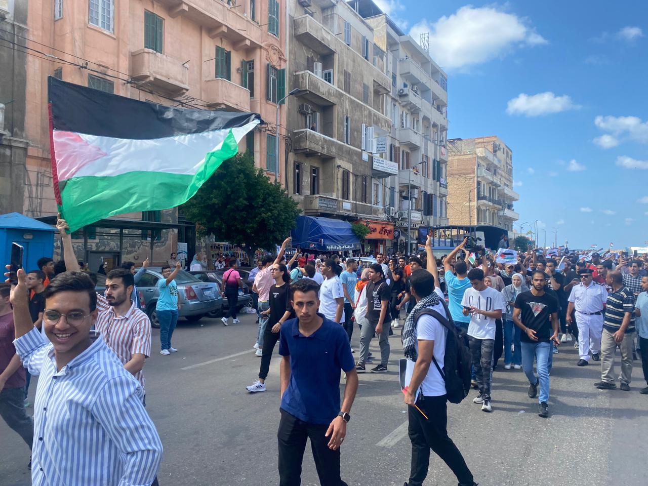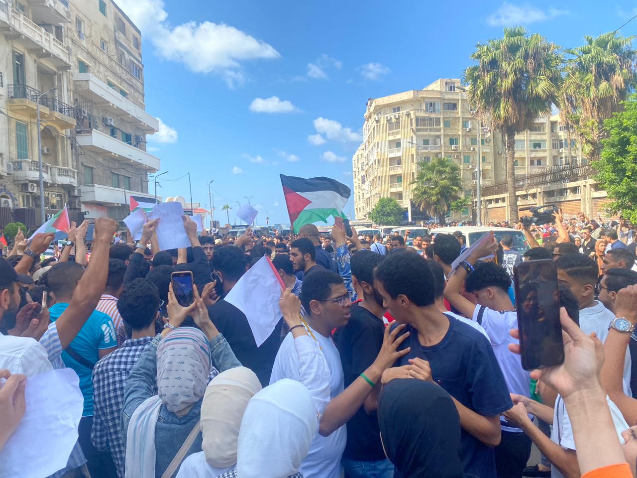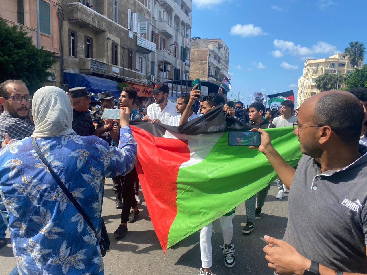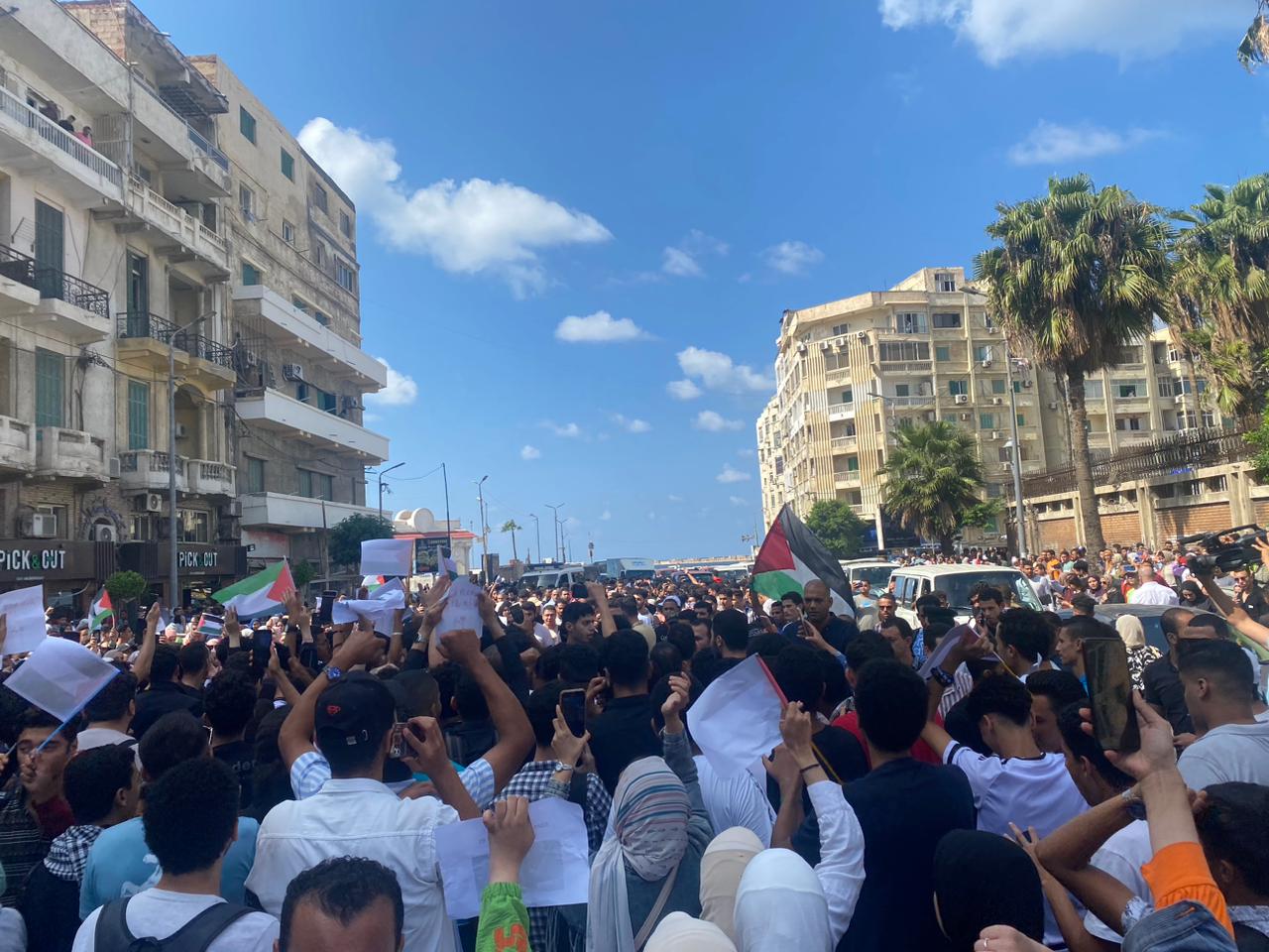 ونظم الطلاب مسيرة شملت الشوارع المحيطة بجامعة الإسكندرية، حيث يحمل المتظاهرون علم فلسطين ولافتات لصور ضحايا وشهداء القصف العدواني من قوات الاحتلال على أطفال ونساء غزة، حيث رددوا " غزة غزة ارض العزة"، كما ندد البعض بضرورة الوقوف بجانب اخواننا الفلسطينيين وتقديم المساعدات المستمرة لهم.