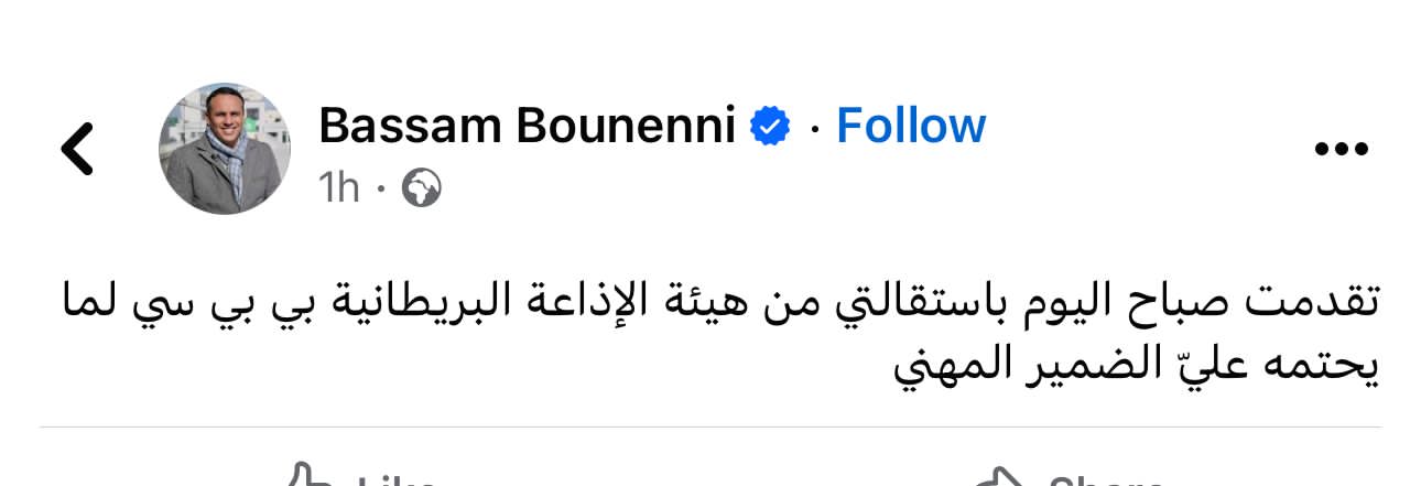 الصحفي التونسي بسام بونني يعلن استقالته من BBC
