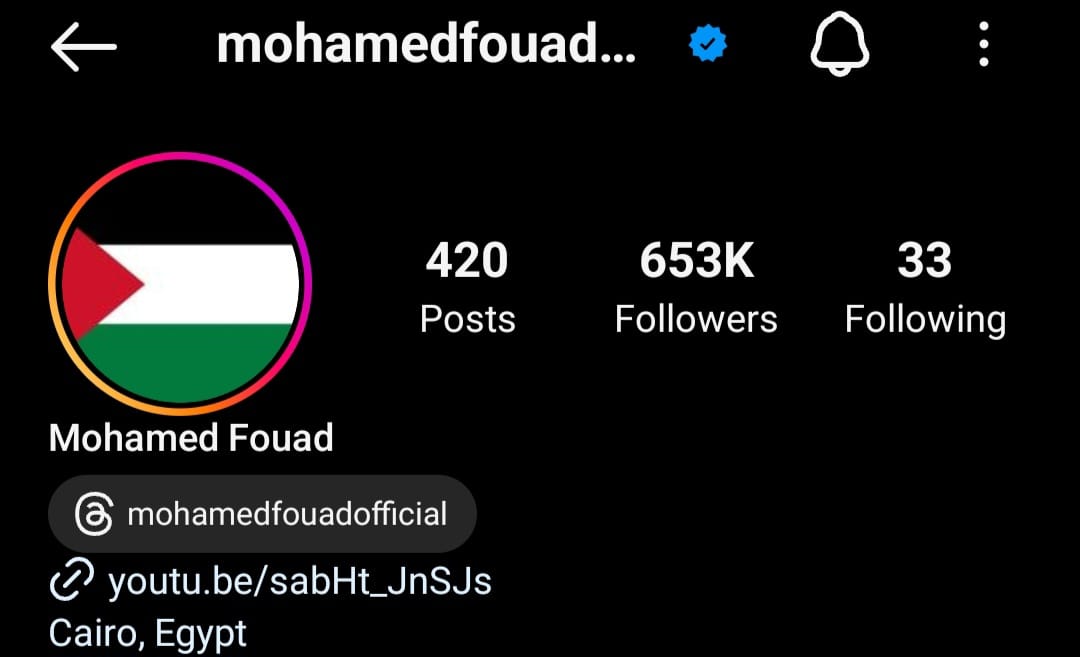 قام الفنان محمد فؤاد بتغيير صورة الملف الشخصي له "البروفايل" للعلم الفلسطيني عبر حسابه الخاص بموق تبادل الصور والفيديوهات "انستجرام".