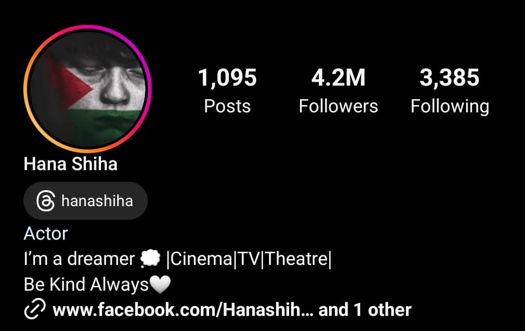 قامت الفنانة هنا شيحة بتغيير صورة الملف الشخصي لها"البروفايل" للعلم الفلسطيني عبر حسابها الخاص بموقع تبادل الصور والفيديوهات "انستجرام".