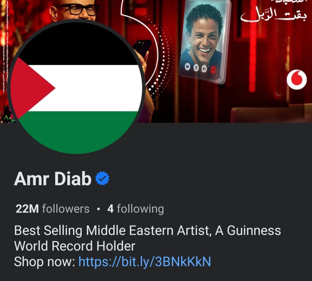 كذلك قام المطرب عمرو دياب بتغيير صورة الملف الشخصي له"البروفايل" للعلم الفلسطيني عبر حسابه الخاص بموقع التواصل الاجتماعي"فيس بوك".