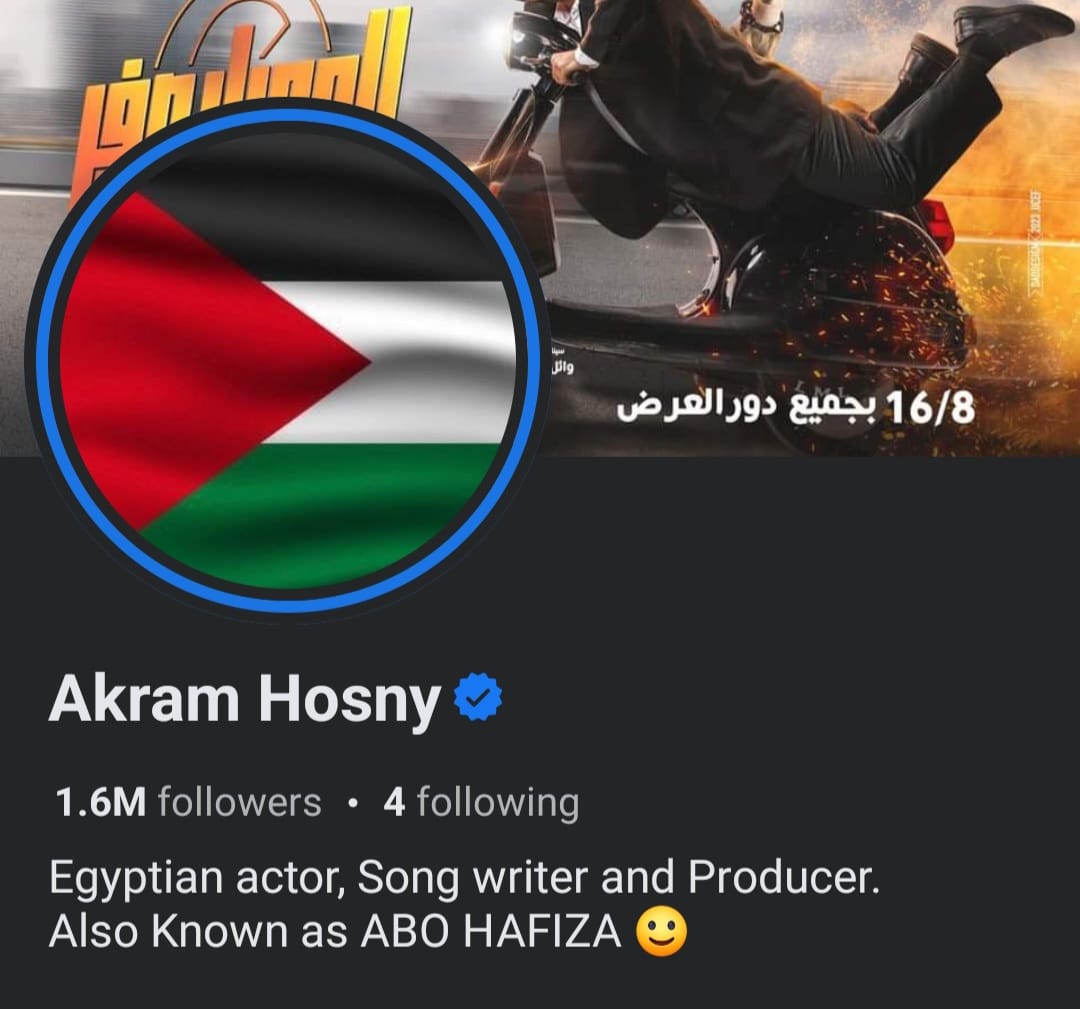 والفنان أكرم حسني بتغيير صورة الملف الشخصي له"البروفايل" للعلم الفلسطيني عبر حسابه الخاص بموقع التواصل الاجتماعي"فيس بوك".