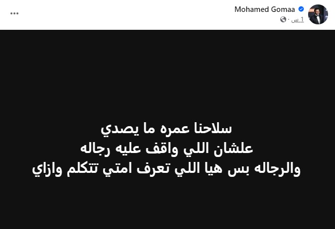 وقال محمد جمعة عبر صفحته على موقع التواصل الإجتماعي “الفيسبوك” :" سلاحنا عمره ما يصدي، علشان اللي واقف عليه رجالة، والرجالة بس هي اللي تعرف إمتى تتكلم وإزاي".