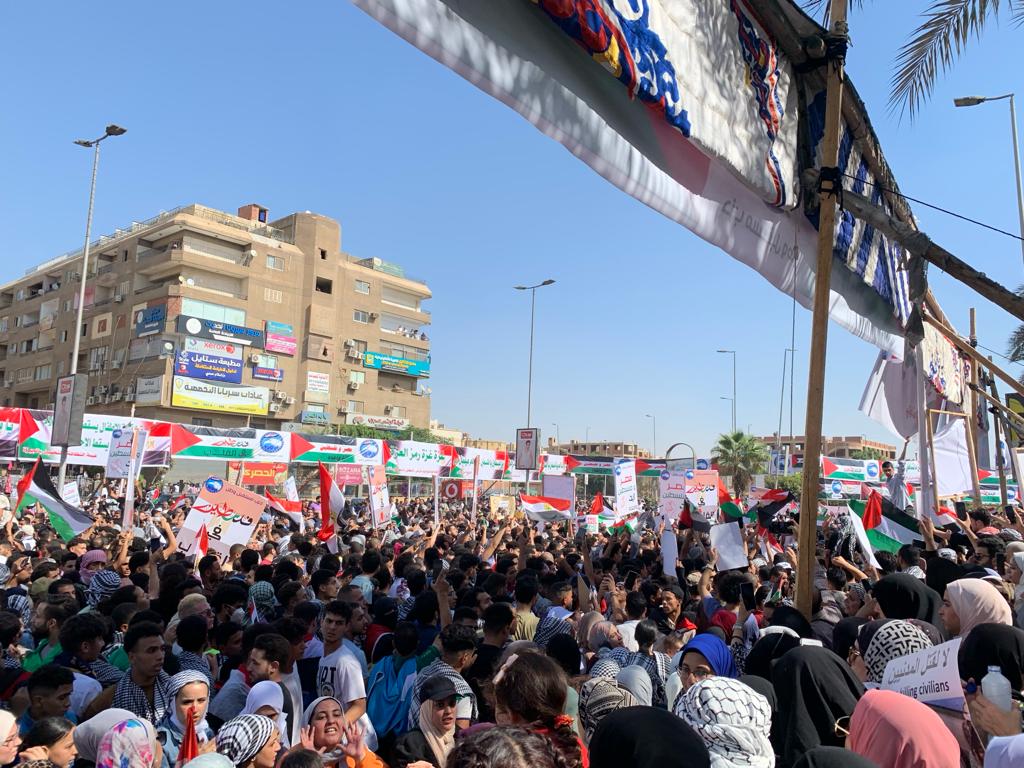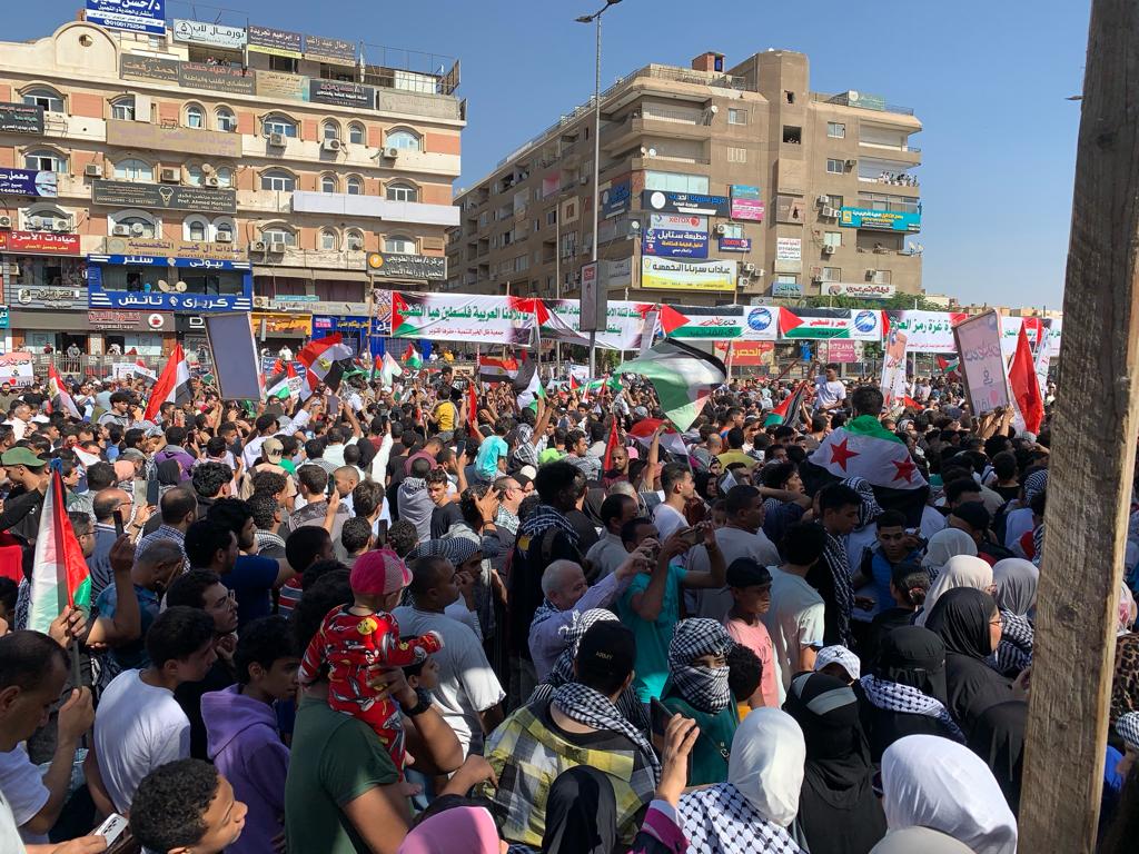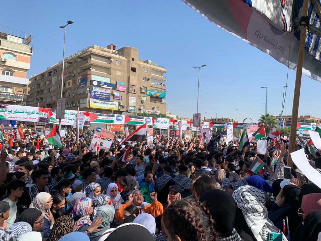 عشرات الآلاف يحتشدون بميدان الحصري دعما لغزة ورفضا لسياسة التهجير للفلسطينيين