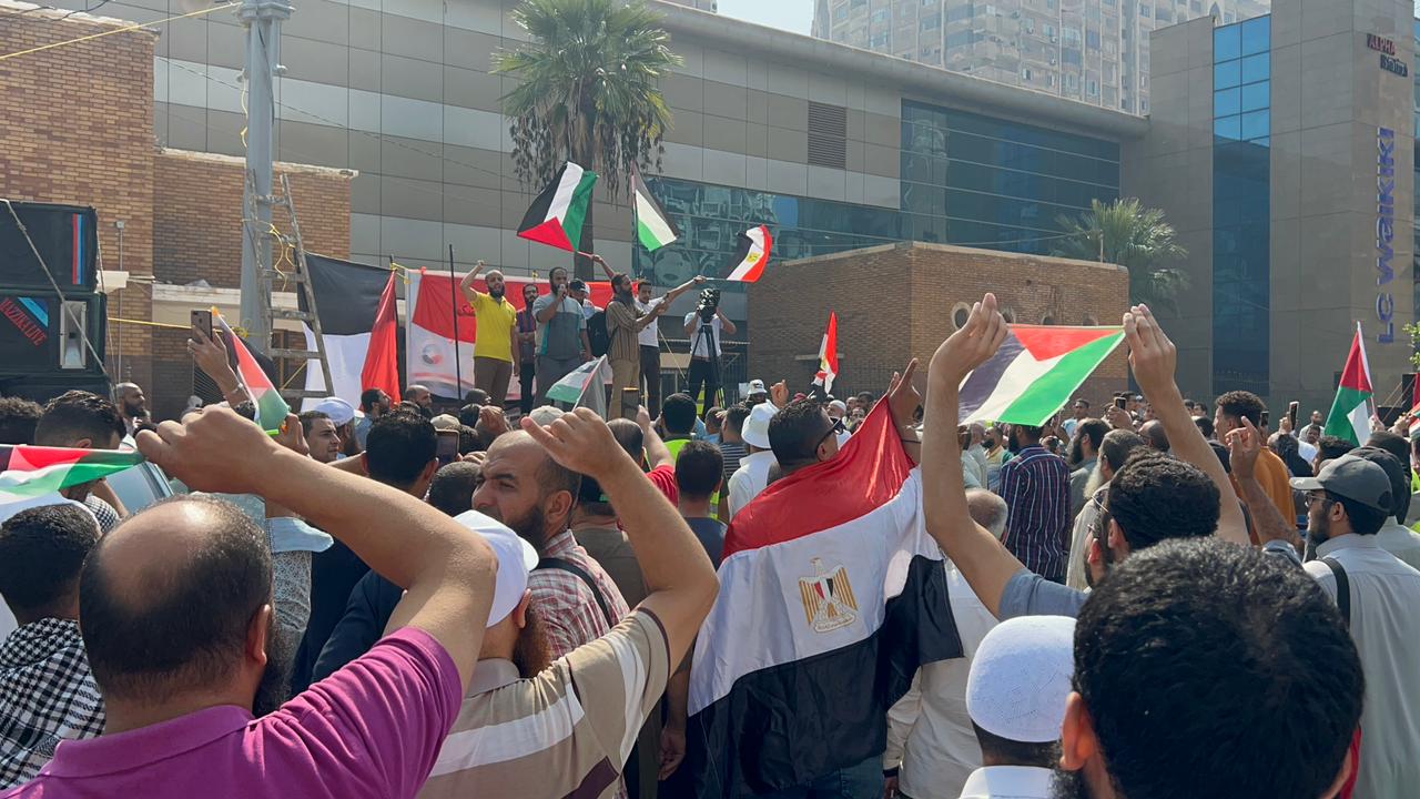 وحمل المواطنين الأعلام الفلسطينية والمصرية، مرددين الهتافات المنددة بمحاولات تصفية القضية الفلسطينية، وأخرى داعمة للسيادة المصرية.