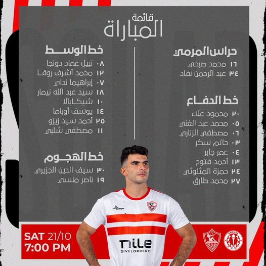 حراسة المرمى: محمد صبحي - عبد الرحمن نفاد .