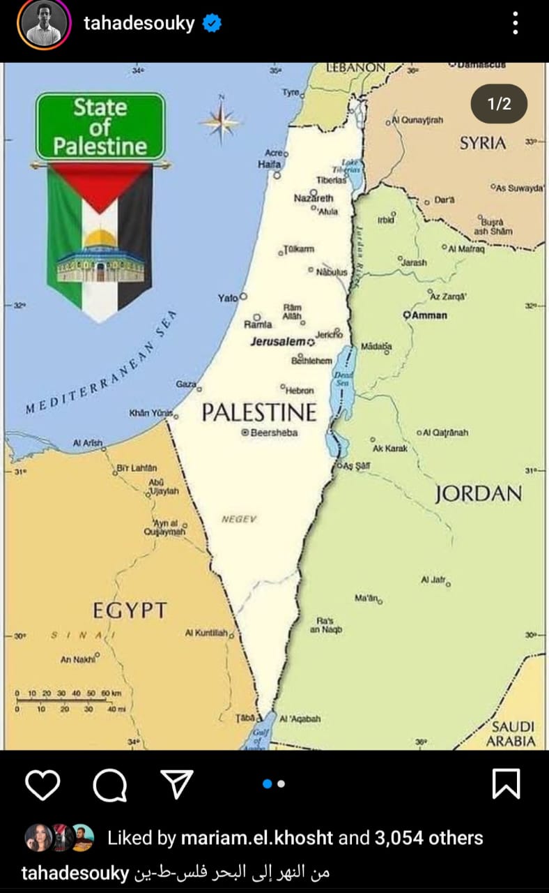 وشارك طه دسوقي جمهوره بعدة صورا، وظهر في الصور خريطة فلسطين،وكتب دسوقي "من النهر إلى البحر فلسطين".