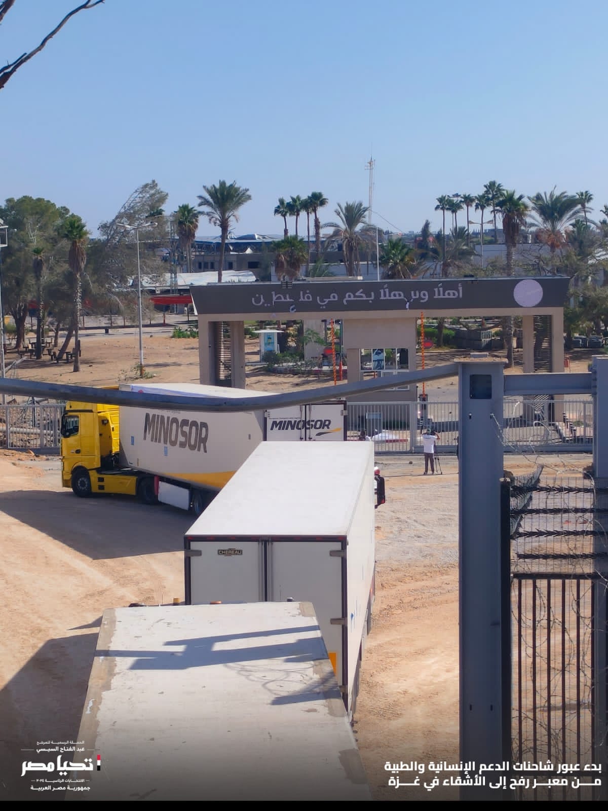 أكدت الحملة الرسمية للمرشح الرئاسي عبدالفتاح السيسي أنه بالتزامن مع مؤتمر القاهرة للسلام، تم دخول شاحنات الدعم الإنسانية والطبية إلى قطاع غزة عبر معبر رفح المصري.
