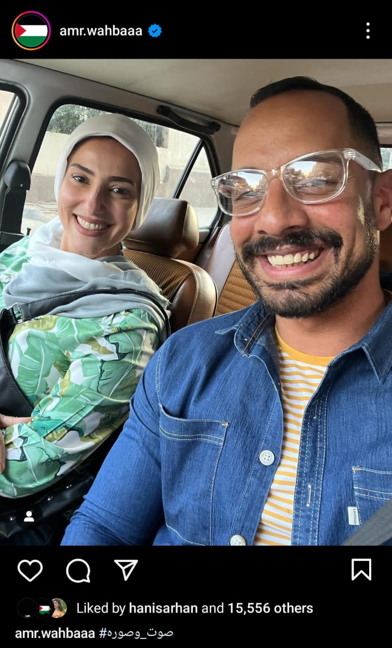 وشارك الفنان عمرو وهبة جمهوره بصورة له مع الفنانة حنان مطاوع من كواليس مسلسل"صوت وصورة".