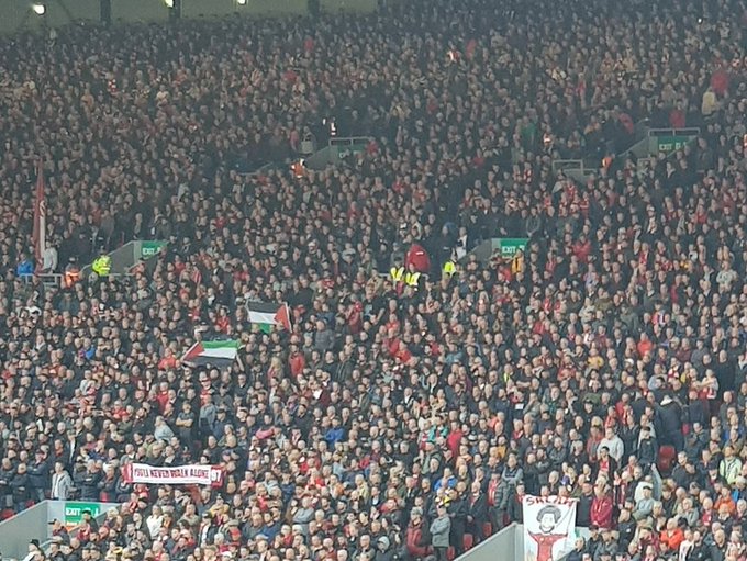 ورفضت جماهير ليفربول الخضوع لقرارات رابطة الدوري الإنجليزي بمنع رفع أى علم يخص الصراع الدائر بين الكيان الصهيوني وفلسطين، ورفعت جماهير الريدزر أعلام فلسطين فى مدرجات ملعب انفيلد معقلل الفريق.