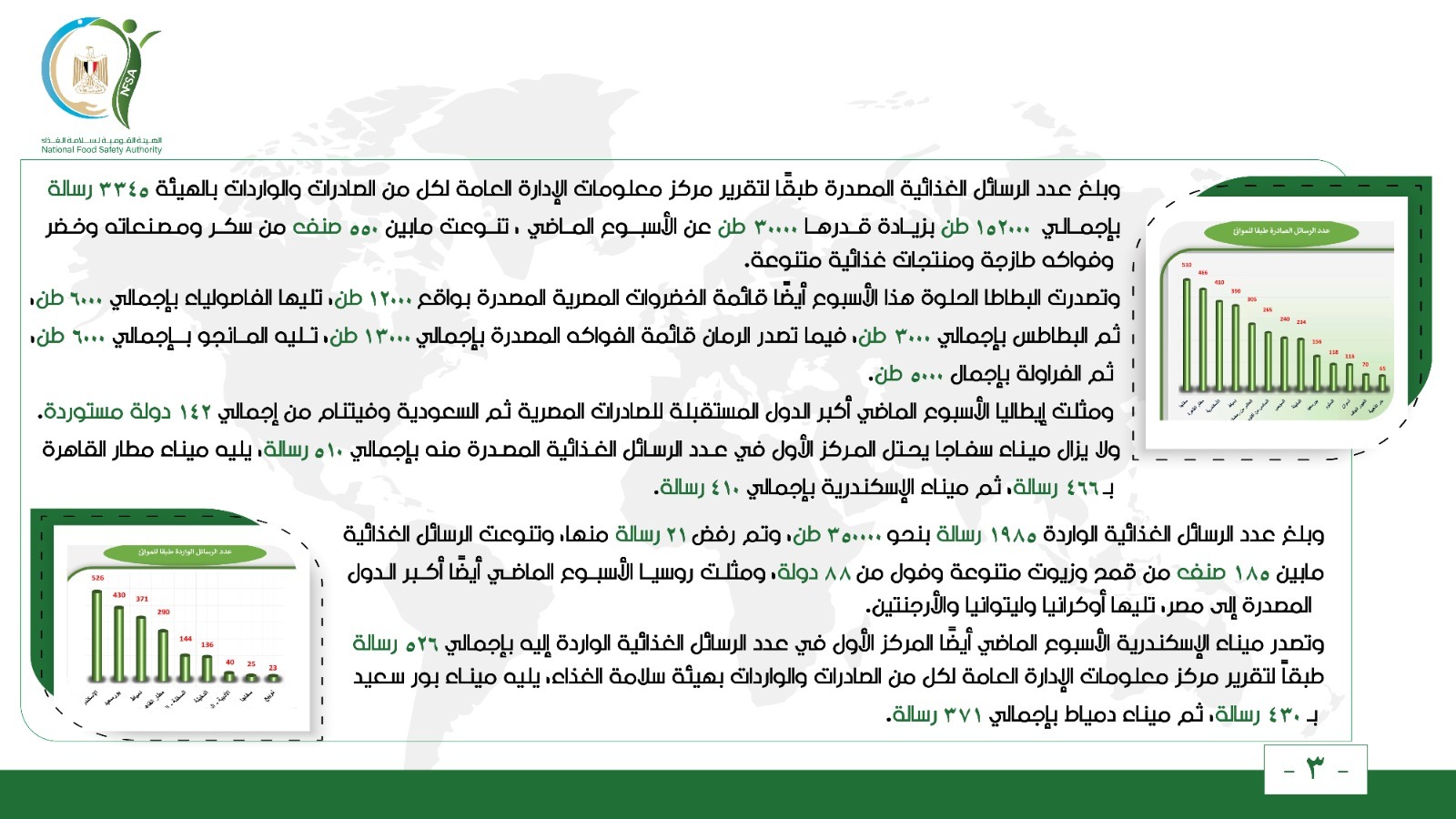 3345 رسالة غذائية مصدرة بزيادة 30000 طن عن الأسبوع الماضي