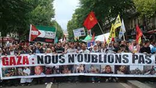 ونقلت وكالة أنباء فرانس 24 ، خلال تغطية إعلامية لها بث مباشر لها، من ساحة الجمهورية بباريس فى فرنسا،أظهرت فيها جموع المتظاهرين محتشدين فى الميدان حاملين الإعلام الفلسطينية، واخرى عليها بقع من الدم، وصورمنددة لرئيس الوزراء الإسرائيلى بنيامين نتينياهو، وصور للمجازر التى قام بها جيش الإحتلال باالمدنين قطاع غزة