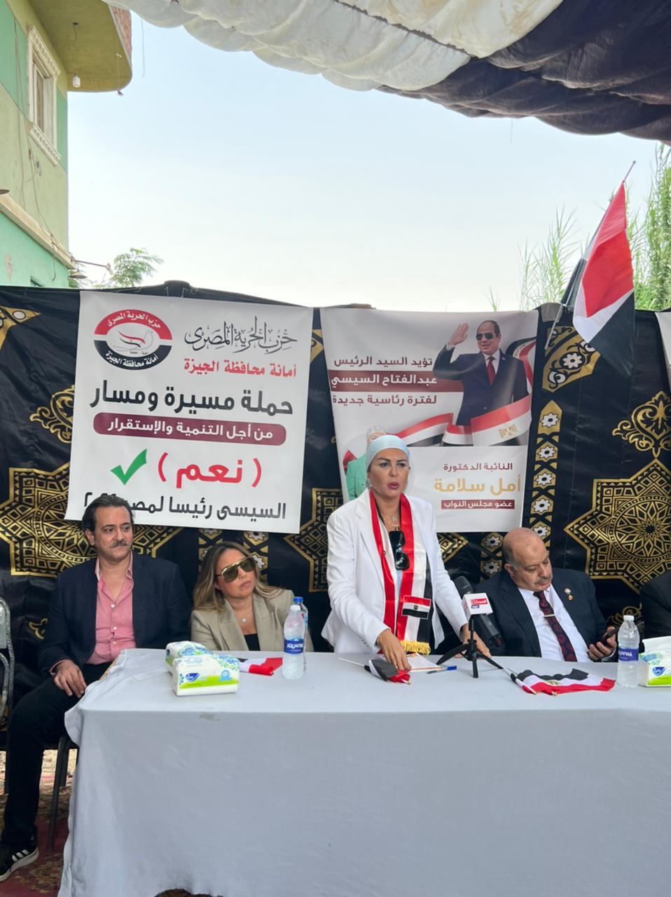 عقدت النائبة أمل سلامة عضو لجنة حقوق الإنسان بمجلس النواب عن حزب الحرية المصري؛ مؤتمرا جماهيريا وشعببا بقرية البكباشى مركز أبو النمرس محافظة الجيزة؛ لدعم الرئيس عبد الفتاح السيسي في الانتخابات الرئاسية المقبلة؛ والتعرف على مشاكل أهالى القرية؛ وكيفية حلها وفي مقدمتها حل مشكلة مياه الشرب والصرف الصحى؛ ومحولات الكهرباء وأزمة القمامة.
