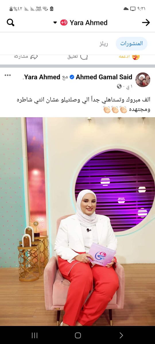 ونشر أحمد جمال سعيد، صورة للإعلامية يارا أحمد وذلك عبر حسابه الشخصي بموقع تبادل الصور والفيديوهات الشهير بـ إنسجرام، معلقا:"ألف مبروك وتستاهلي جداً الي وصلتيلو عشان انتي شاطره ومجتهده".