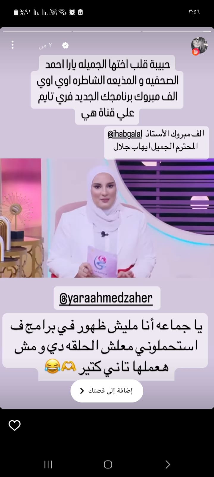بينما علقت النجمة راندا البحيري عبر حسابها بموقع إنستجرام قائلة: "ألف مبروك مذيعة كبيره و مهمه علي قناه مهمه محترمه تستاهلي كل خير يا حبييتي.. برنامج فري تايم".
