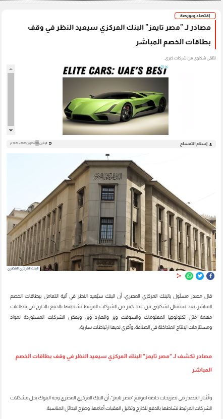 وكان يفيد الخبر بما صرح به المصدر المسئول وما تم تطبيقه اليوم الخميس 26 أكتوبر 2023 ، وجاء الخبر مشيرا إلي أن مصدر مسئول بالبنك المركزي المصري، أكد علي أن البنك سيٌعيد النظر في آلية التعامل ببطاقات الخصم المباشر، بعد استقبال لشكاوى من عدد كبير من الشركات المرتبط نشاطتها بالدفع بالخارج في قطاعات مهمة مثل تكنولوجيا المعلومات والسوفت وير والهارد وير، وبعض الشركات المستوردة لمواد ومستلزمات الإنتاج المتداخلة في الصناعة، وآخري لديها ارتباطات سارية.
