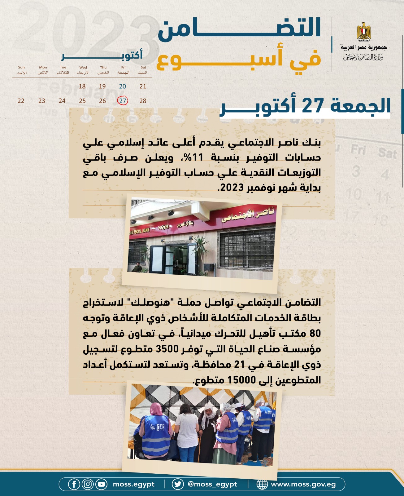 بنك ناصر الاجتماعي بنك ناصر الاجتماعي يقدم أعلى عائد إسلامي علي حسابات التوفير بنسبة 11%، ويعلن صرف باقي التوزيعات النقدية علي حساب التوفير الإسلامي مع بداية شهر نوفمبر 2023.
