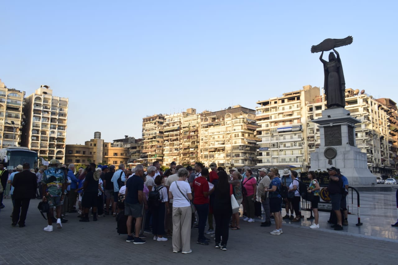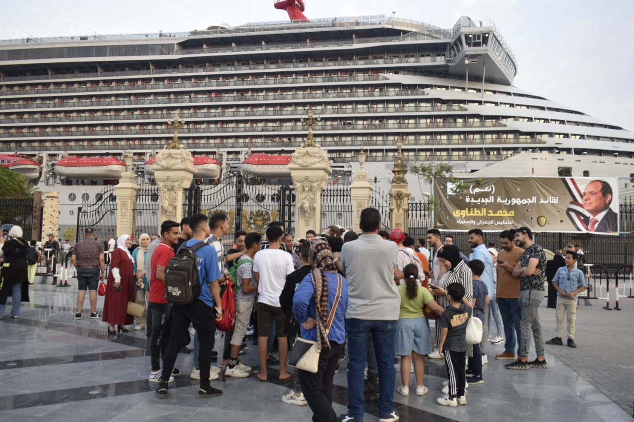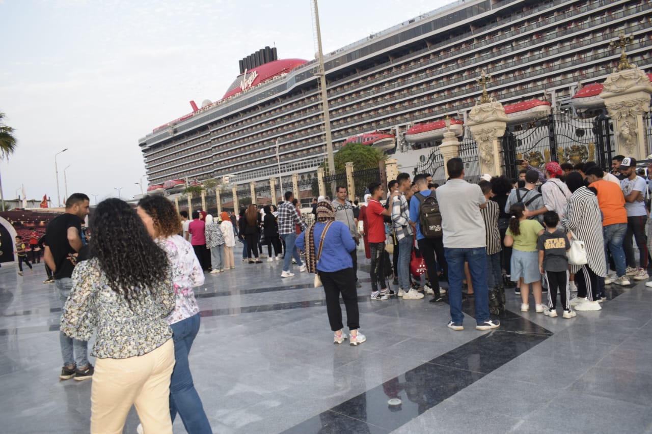 توافد أبناء بورسعيد وزوارها من المحافظات المختلفة على "ساحة مصر" المطلة على ميناء بورسعيد السياحي لالتقاط الصور التذكارية مع السفينة السياحية العالمية، ووداع ركابها، ومشاهدة لحظة مغادرتها