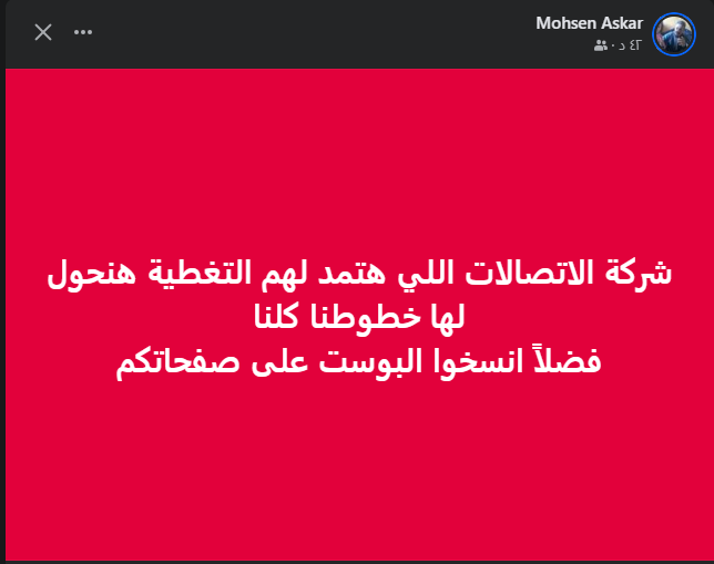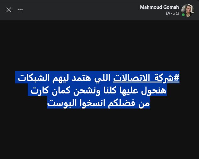 وكتبت عدة صفحات منشورات قائلة " شركة الاتصالات اللي هتمد التغطية لأهالي فلسطين وقطاع غزة هنحول خطوطنا ليها كلنا، وهنشحن كارت كمان، وطالبوا نسخ البوست علي صفحات الفيس بوك لكل الأفراد.
