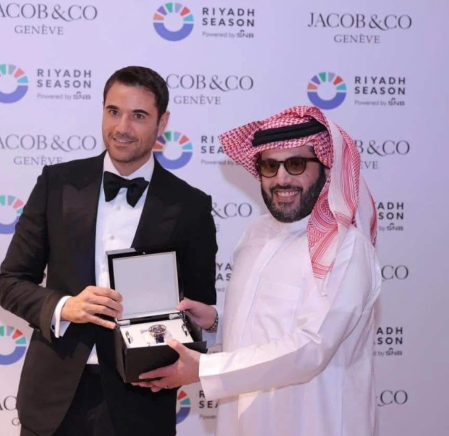 موسم الرياض .. قرر المستشار تركي آل الشيخ إهداء الفنان أحمد عز بساعة يد، إذ تعد هذه الساعة الأغلى في العالم حيث تتخطى سعرها 3 مليون ريال سعودي أي تساوي 40 مليون جنيه مصري، وهذه الساعة لم يصنع منها سوى 18 نسخة فقط على مستوى العالم، كما تتميز هذه الساعة التي تسمى "Astronomia Tourbillon "، والتي تعد صناعة سويسرية من شركة "Jacob & Co " وهي شركة أمريكية متخصصة بصناعة الساعات الفاخرة والمجوهرات، وتتميز بأن هيكلها مصنوع بالكامل من الذهب الوردي والذي يصل وزنه إلى 18 قيراط مع زخرفات من الياقوت على الجانبين وبالإضافة إلى وجود 342 حجر ماسي وزنهم 16 قيراط موزع بمختلف أرجائها الداخلية بشكل غير ظاهر بوضوح مما يزيد من فخامتها .