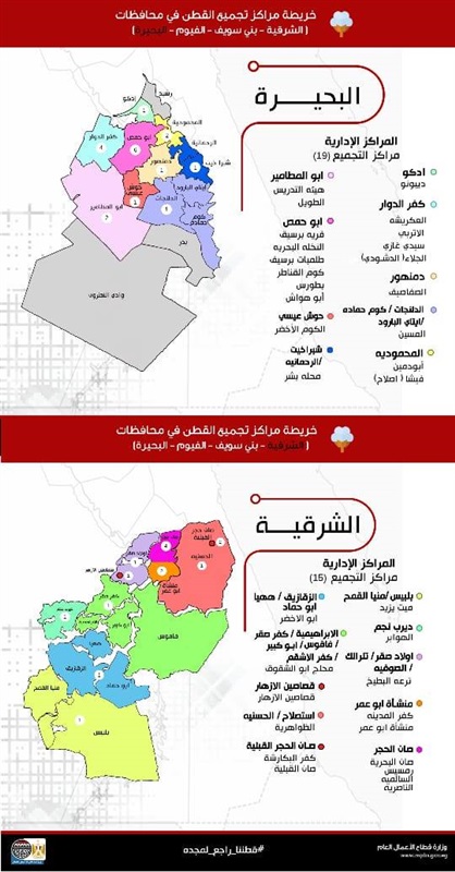ويبلغ عدد مراكز التجميع في البحيرة 19 مركزا موزعة على المراكز الإدارية وفي الشرقية 15 مركزا للتجميع.