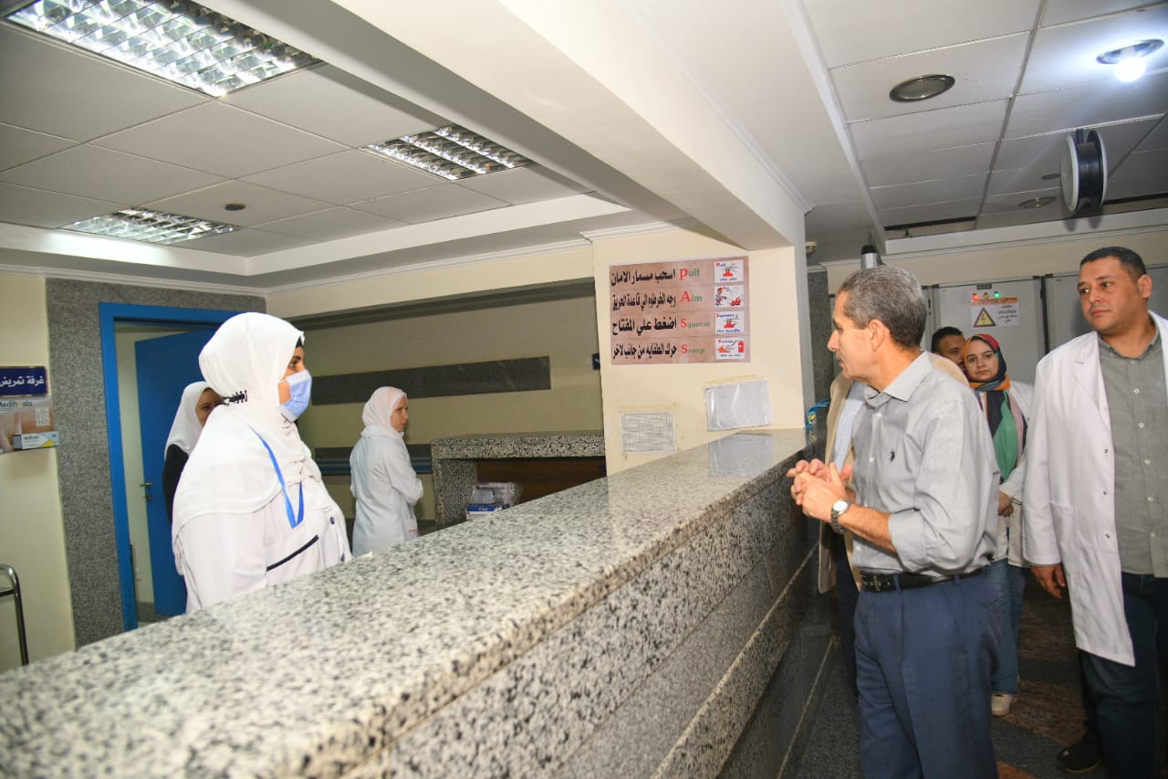وقام بتفقد بعض عيادات الاستقبال ، والتقى ببعض المرضى والمواطنين المترددين على العيادات، والتي تشهد إقبالا كبيراً من المواطنين، واطمأن على جودة الخدمات الطبية المقدمة لهم، كما تابع سير العمل بمختلف الأقسام واستمع إلى بعض طلبات المواطنين، موجهاً بسرعة الاستجابة لها، واطمأن على انتظام العمل ومدى جودة الخدمات المقدمة للمرضى، ثم اطمأن على سير العمل بأقسام العمليات الصغرى والوسطى والكبرى، والتي تستقبل المرضى من مختلف قرى ومراكز المحافظة، وتقدم خدماتها لجميع المواطنين ، كما اطمأن على صحة المرضى ومدى رضاهم عن الخدمات الصحية المقدمة لها.