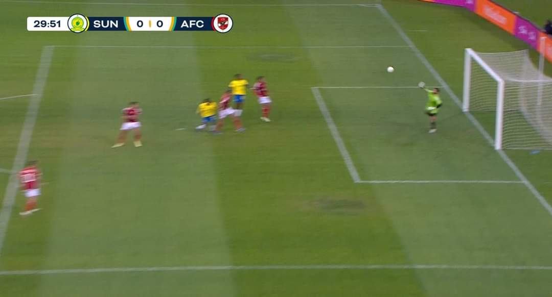 وفي الدقيقة الـ 30 من عمر الشوط الأول أستطاع محمد الشناوي أن يتصدى لهدف مؤكد من صن داونز كان أن يهز شباك المارد الأحمر.