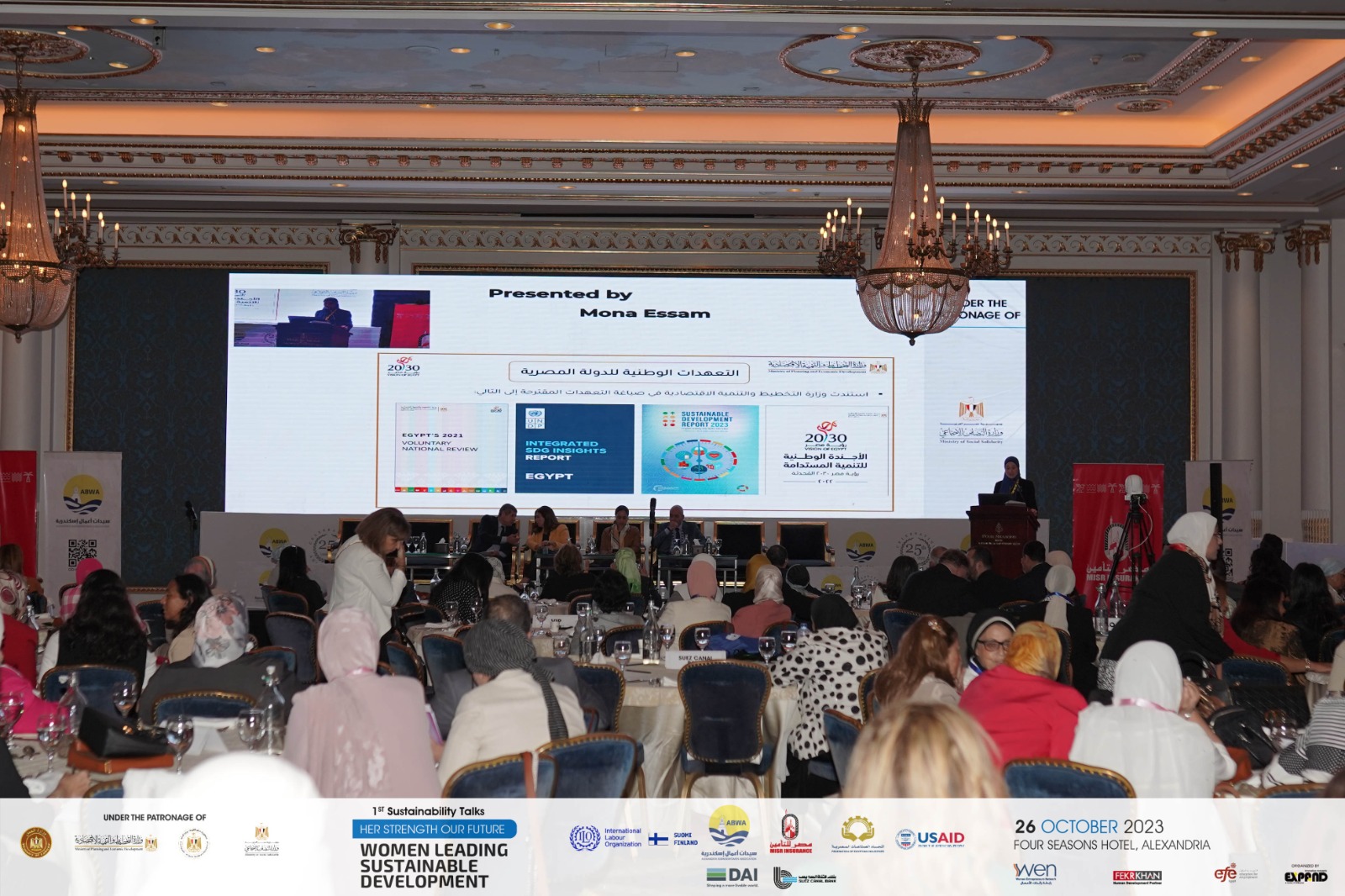 كما تطرق الحديث إلى التعهدات المصرية والمجالات ذات الأولوية، التي تم مشاركتها في قمة أهداف التنمية المستدامة (SDG Summit) المنعقد بالأمم المتحدة في شهر سبتمبر الماضي، فمن ضمن تلك المجالات العمل على زيادة مشاركة المرأة في القوى العاملة.