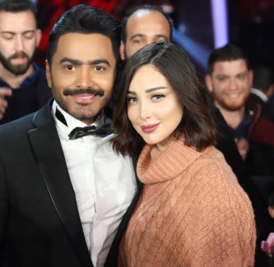 بسمة بوسيل .. وكان قد كتب تامر حسني عبر موقع تبادل الصور والفيديوهات انستجرام:" ملاحظ إن في بعض التعليقات كل ما أنزل موضوع أغنية أو هزار معاكم، بعض الناس بيربطوه بحياتي الشخصية، ده غلط يا جماعة، أولًا مش أنا اللي ممكن أعمل كده ورغم الظروف الحالية.. مازلت أكن لبسمة كل الحب والاحترام، ده غير إن هي شاركتني في اختيار أغانيا ومهما يحصل دي في دمي وأم أولادي وعلاقتنا كويسة جدًا دلوقتي ولو طلبت عنيا مش هتأخر".