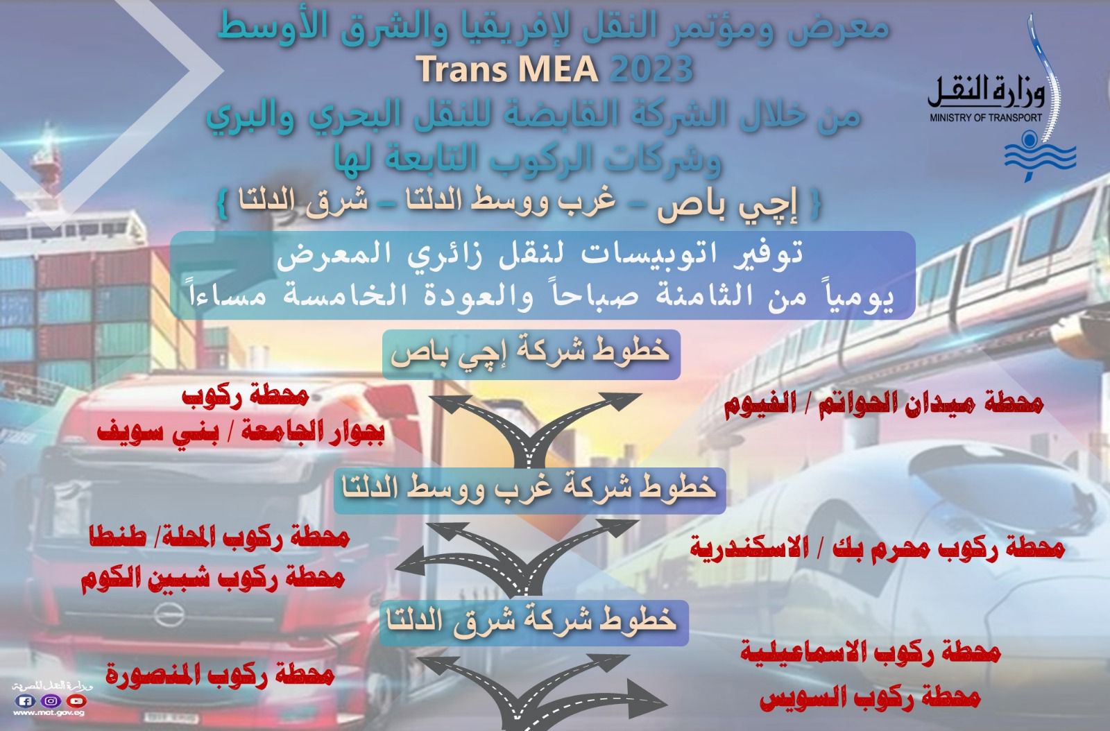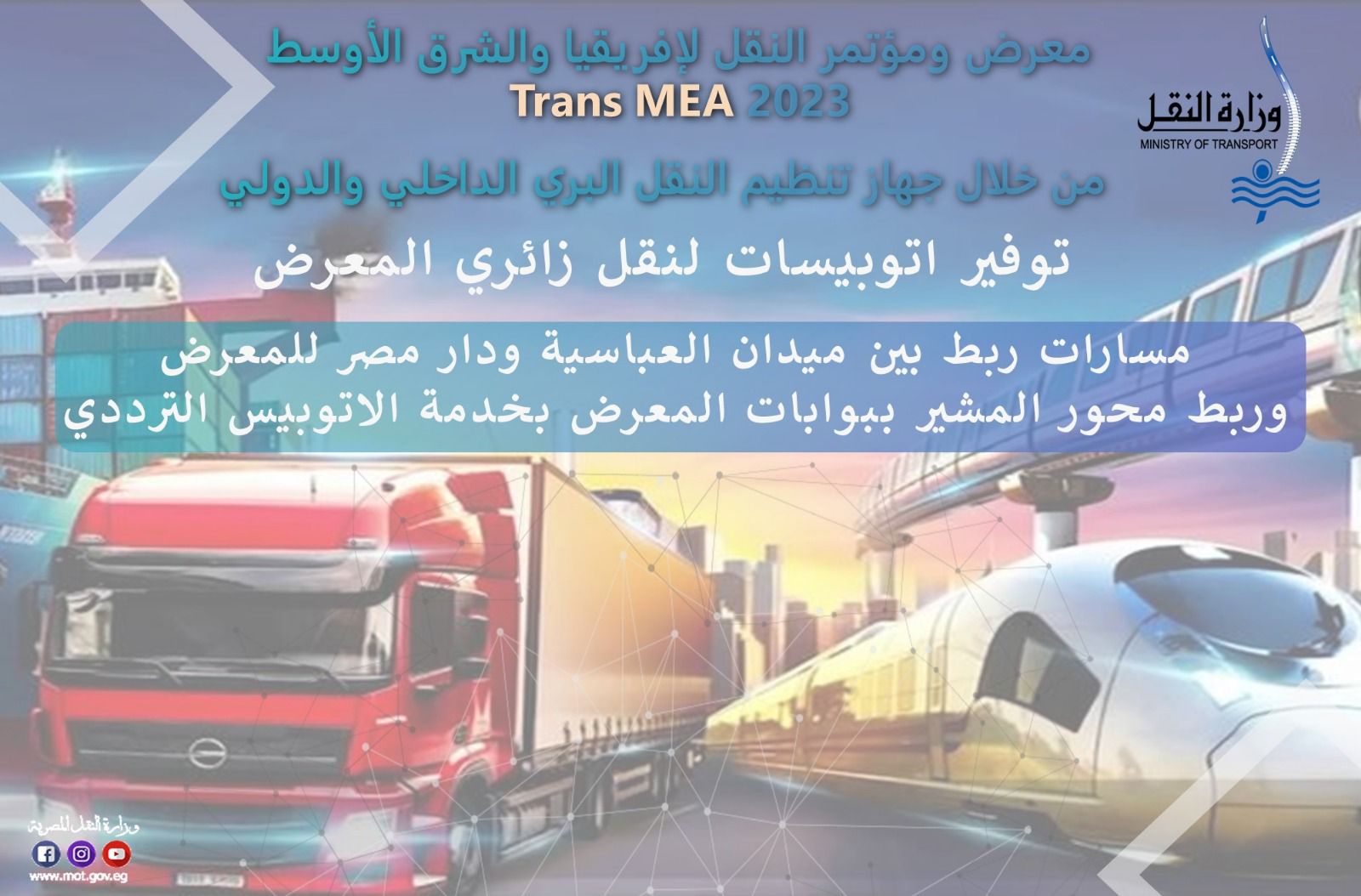 انطلاقا من توجيهات فخامة السيد الرئيس عبد الفتاح السيسي رئيس الجمهورية واهتمام الحكومة المصرية ممثلة في وزارة النقل بدعم وتطوير وسائل وخدمات النقل ، أتمت وزارة النقل الاستعدادات والتجهيزات النهائية لإطلاق فعاليات الدورة الخامسة لمعرض ومؤتمر النقل لإفريقيا والشرق الأوسط TransMEA 2023 خلال الفترة من ( 5 ) إلى ( 8 ) نوفمبر 2023 تحت رعاية وتشريف فخامة السيد رئيس الجمهورية .