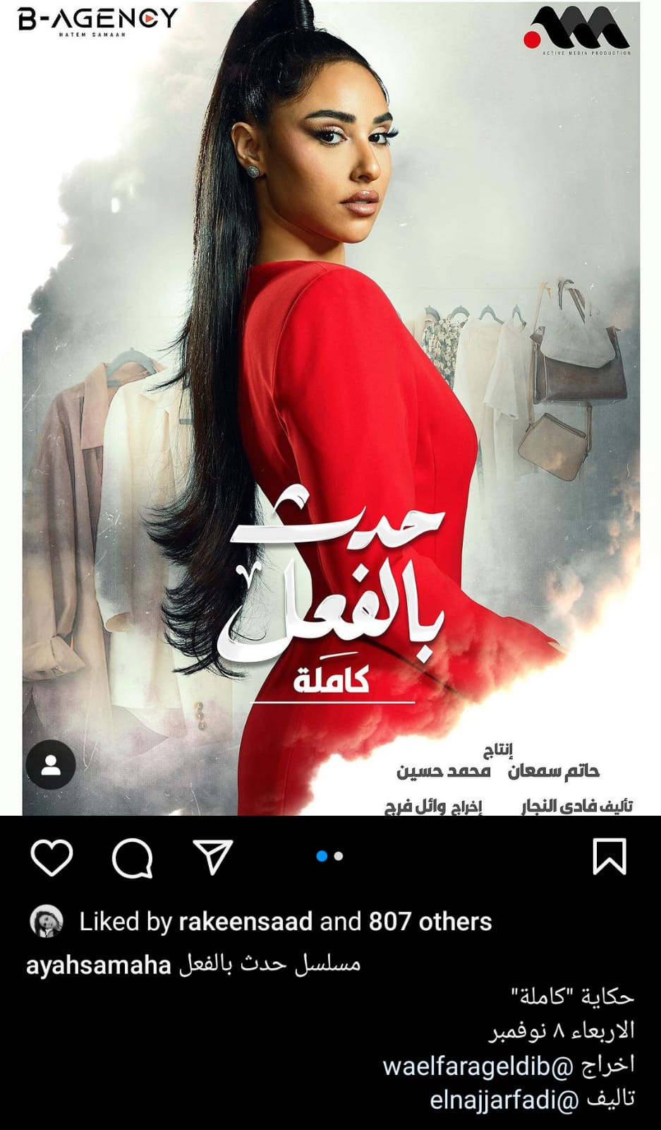 آية سماحة تستمر في الترويج لمسلسل حدث بالفعل