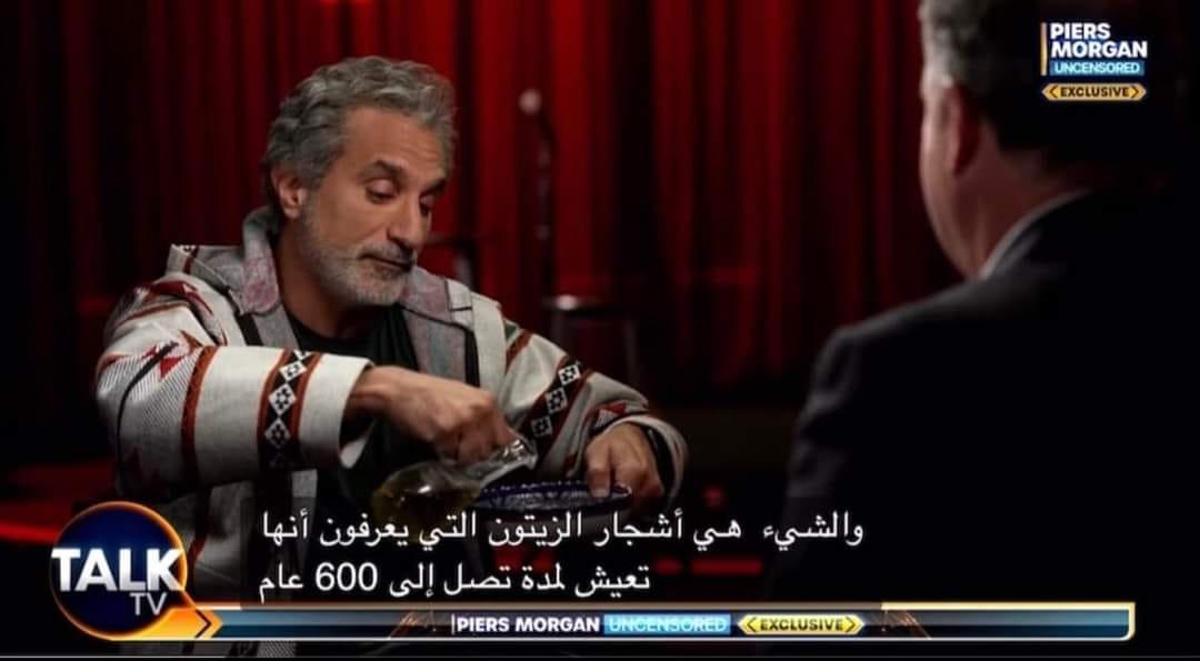 وتطرق باسم يوسف لشجر الزيتون، حيث أكد أن هذه الأشجار تنمو في الضفة الغربية وأن بعضها عمره يزيد عن 600 سنة، ويتم توريثه للأجيال المتتالية.