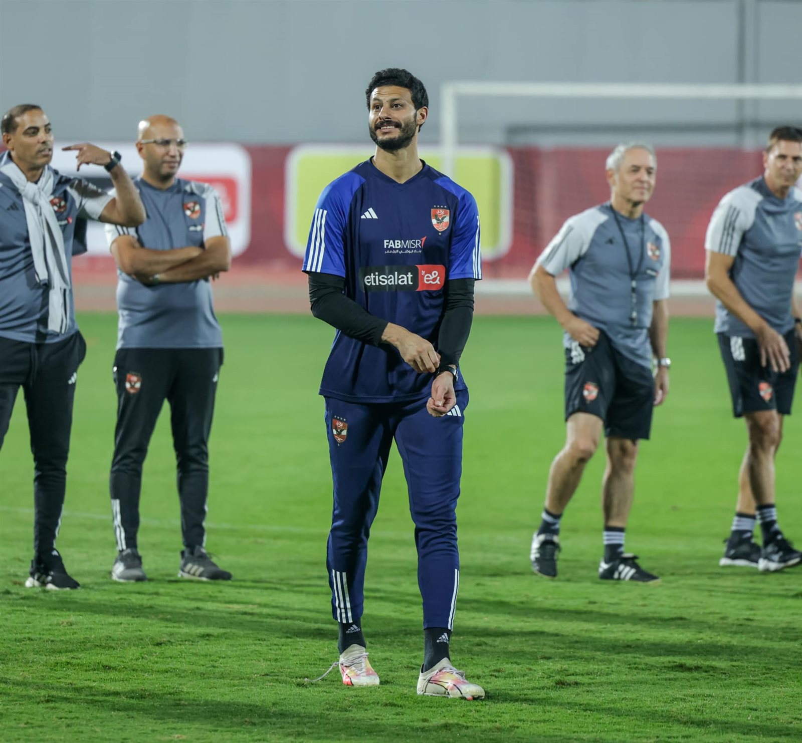 اختتم الفريق الأول لكرة القدم بالنادي الأهلي، تدريباته مساء اليوم الجمعة، على ملعب التتش بالجزيرة، وذلك في إطار الاستعدادات لمواجهة فريق المقاولون العرب، في الدوري الممتاز.