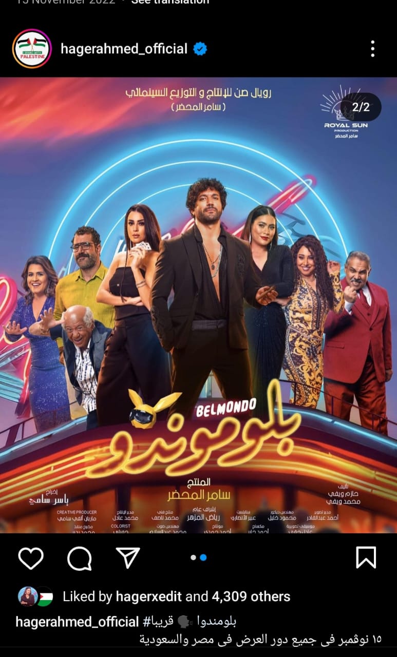 وكتبت هاجر"بلوموندو قريبا 15 نوفمبر في جميع دور العرض في مصر والسعودية.