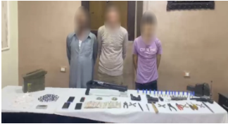 كما تم ضبط (3 عاطلين "لإثنين منهم معلومات جنائية" مقيمين بدائرة مركز شرطة قويسنا بالمنوفية) بدائرة قسم شرطة قويسنا بالمنوفية، وبحوزتهم (1,120 كيلو جرام لمخدر الهيروين- بندقية خرطوش- 2 فرد محلى- طبنجة وعدد من الطلقات مختلفة الأعيرة- طبنجة محدثة صوت و عدد من طلقات الصوت "مجموعة من الأدوات يستخدمها أحدهم فى صيانة وإصلاح الأسلحة النارية" –ميزان حساس ).