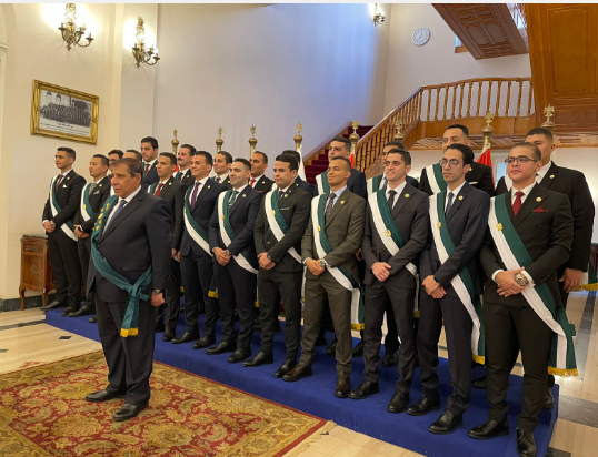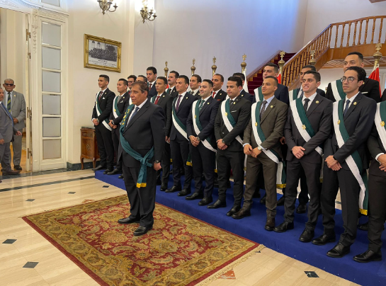 التقط المندوبون المساعدون الجدد بمجلس الدولة، صورة جماعية تذكارية مع رئيس مجلس الدولة، عقب أداء اليمين القانونية لدفعة تظلمات 2019 .
