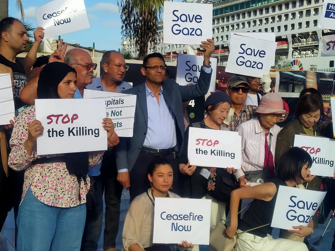 نقيب الصحفيين من بورسعيد يطالب بوقف الحرب في غزة وسط مئات اليابانيين