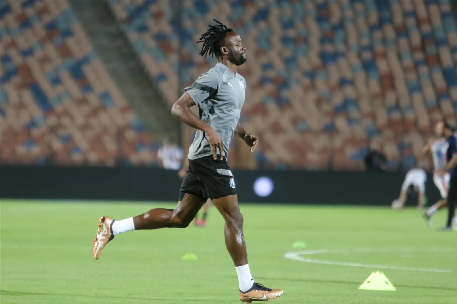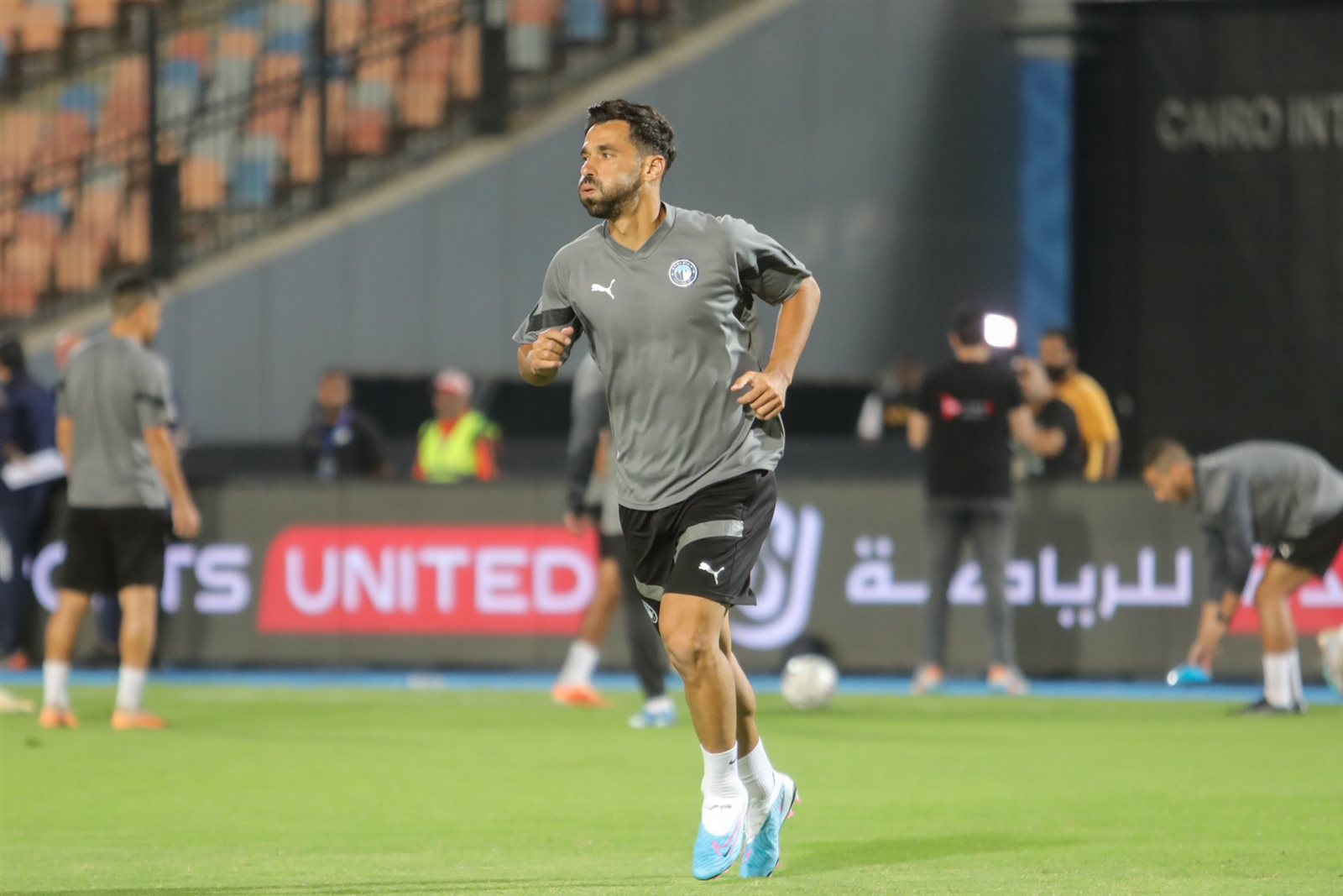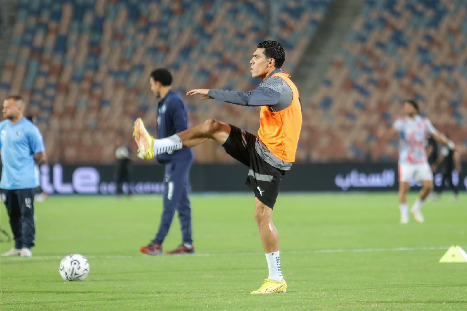 نزول لاعبي بيراميدز لاجراء عمليات الإحماء استعداداً لمواجهة الزمالك