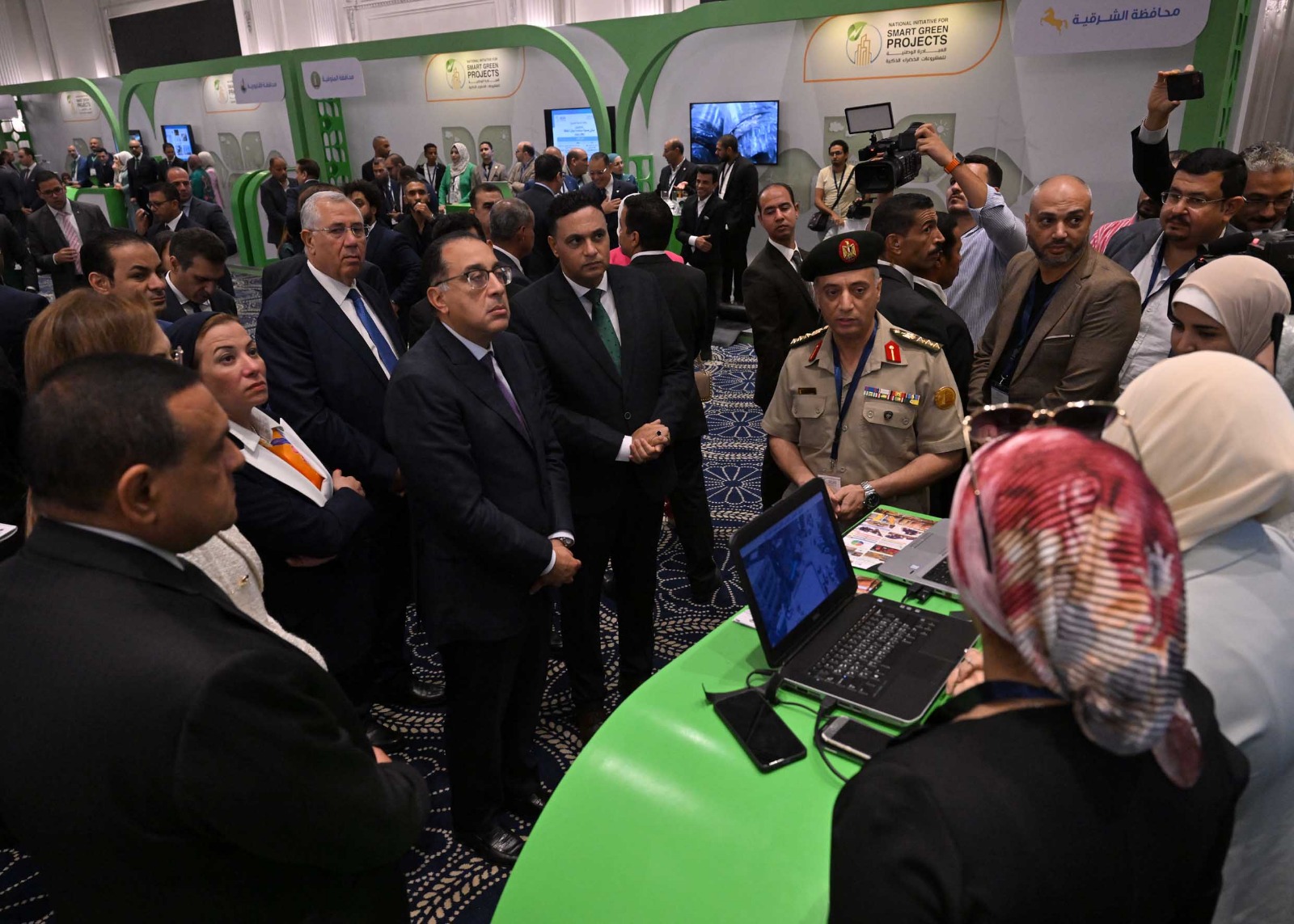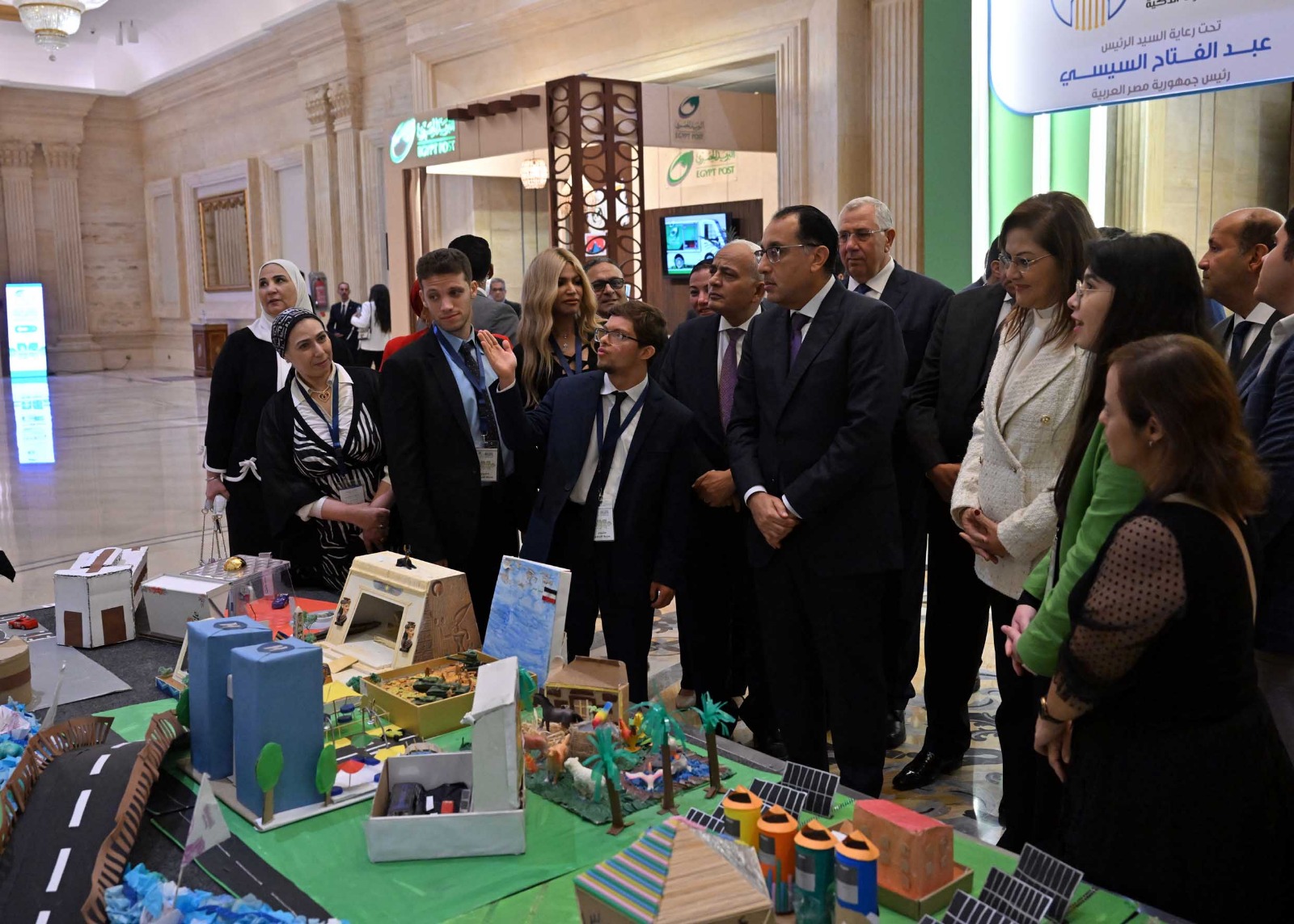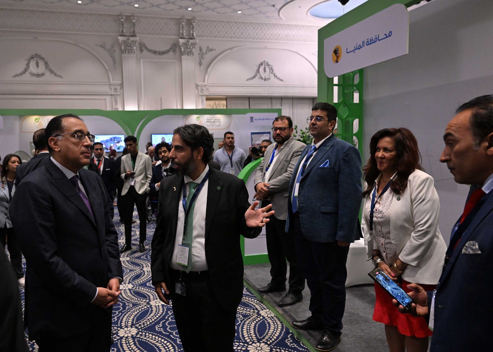 واستهل رئيس مجلس الوزراء مشاركته بالقيام بجولة تفقدية لمعرض المشروعات المتأهلة من المحافظات، حيث تجول الدكتور مصطفى مدبولي ومرافقوه للتعرف على طبيعة المشروعات، التي تضمنت مشروعات خاصة بمعالجة مياه الصرف، وإدارة منظومة الأمطار، وإدارة المخلفات الصلبة والنفايات الخطرة، والتنمية الزراعية، ورصد التغيرات المناخية، وغيرها.