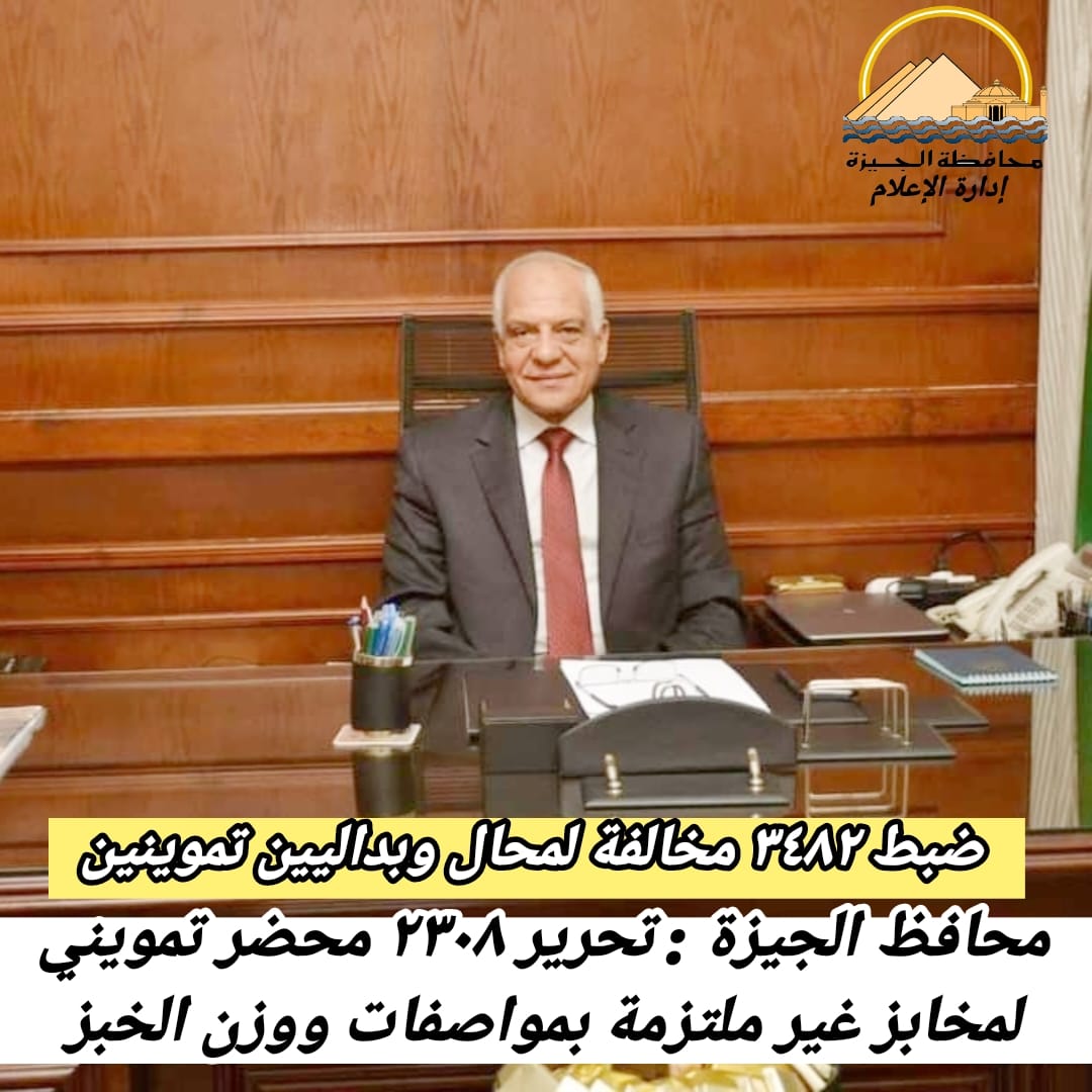 محافظة الجيزة تضبط 3482 مخالفة تموينية لمخابز وبداليين تموينين ومحال عامة