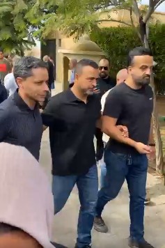 مصطفى حسني يشارك في تشييع جنازة الفنان شريف شاكر بمسجد حسن شربتلي