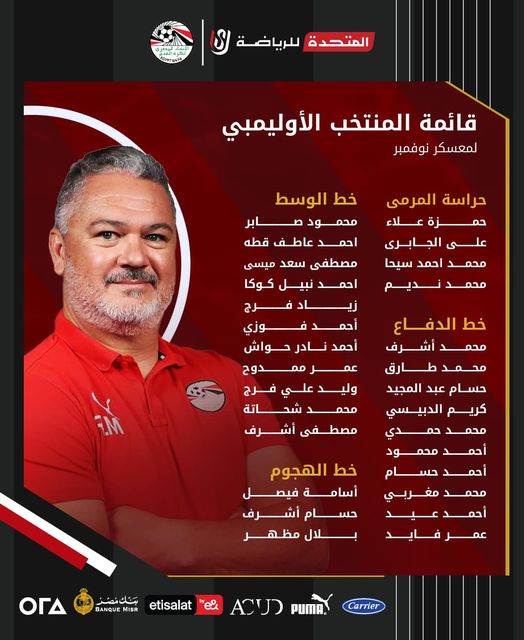قائمة منتخب مصر الأولمبي لمعسكر نوفمبر استعدادا لأولمبياد باريس 2024