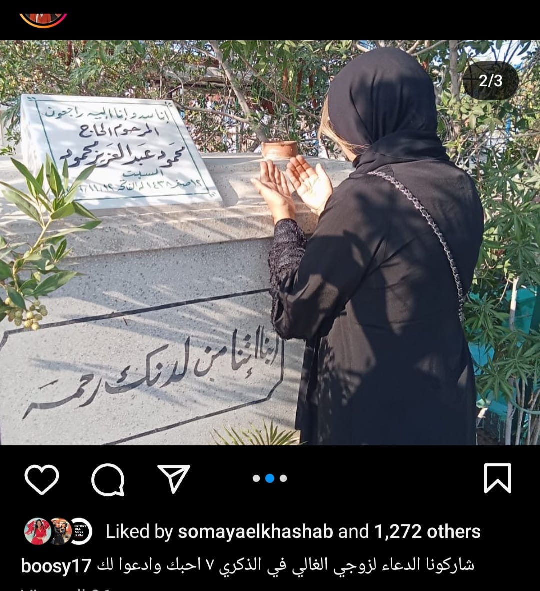 وشاركت شلبي جمهورها بعدة صورًا لها من أمام مدفن زوجها الراحل، وذلك عبر حسابها الخاص بموقع تبادل الصور والفيديوهات"انستجرام".