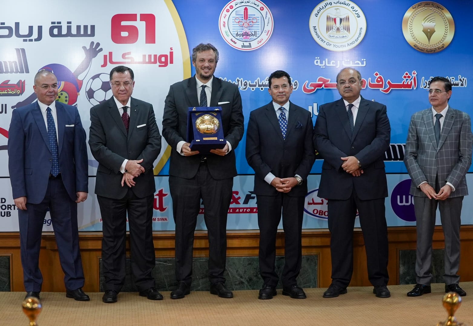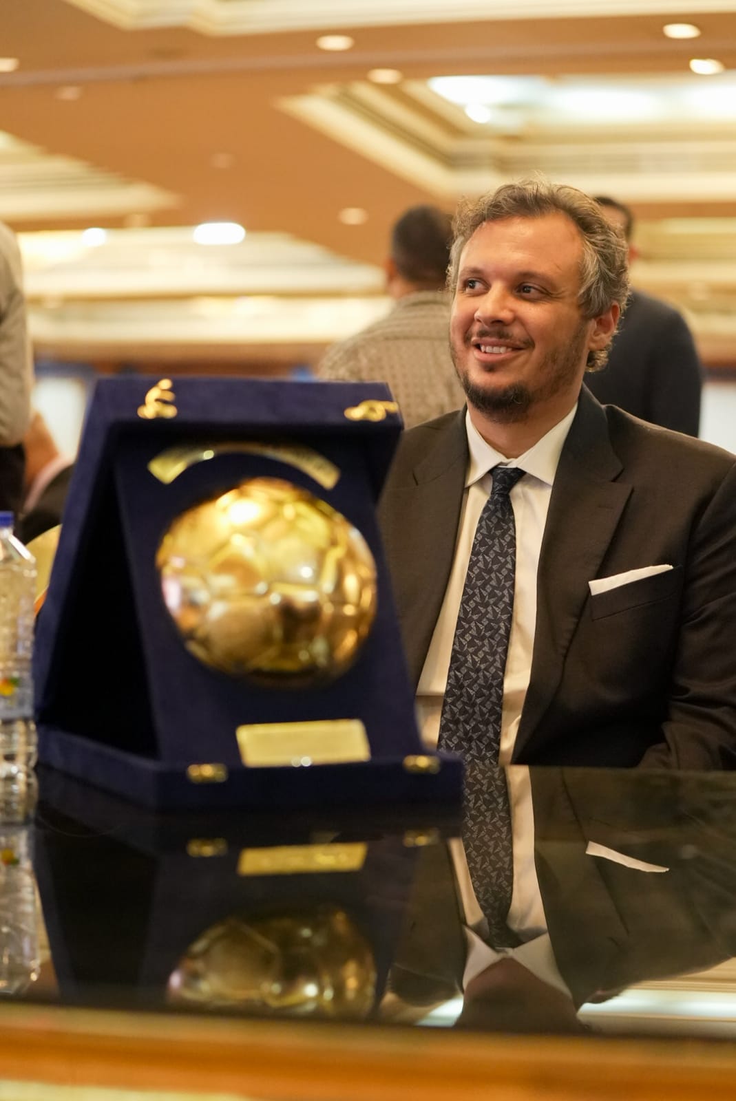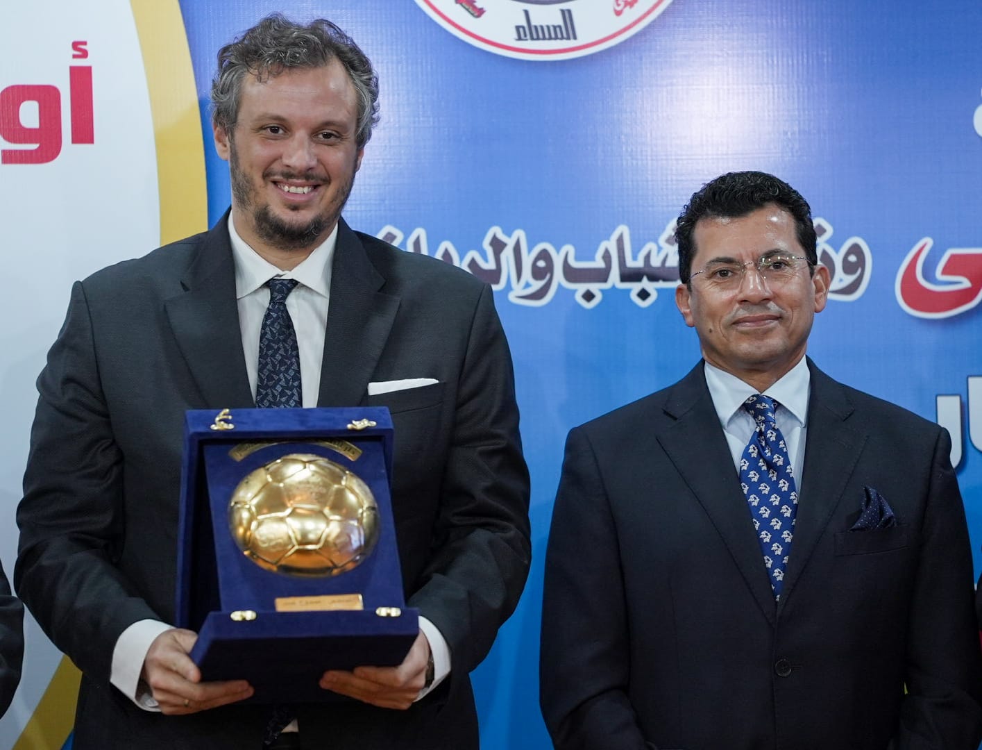وتسلم رئيس نادي بيراميدز الجائزة والتكريم من السيد الدكتور أشرف صبحي وزير الشباب والرياضة والمهندس هشام حطب رئيس اللجنة الأولمبية المصرية، والأستاذ إياد أبو الحجاج رئيس مجلس إدارة دار التحرير للطبع والنشر، والأستاذ محمد الدمرداش رئيس تحرير جريدة الكورة والملاعب.